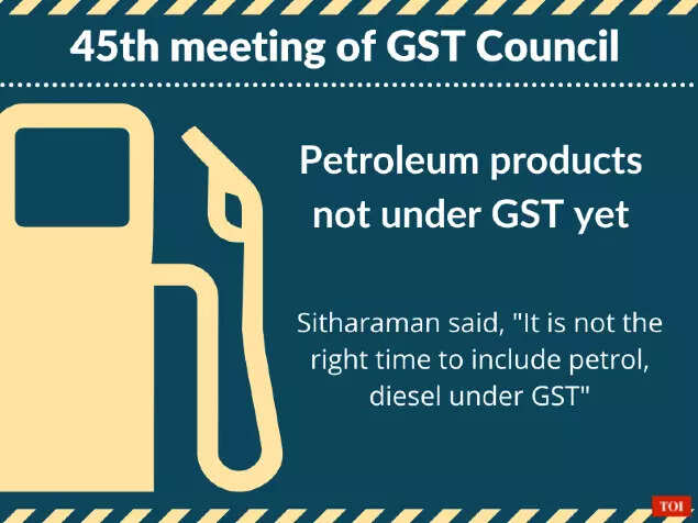NEW DELHI: Finance minister Nirmala Sitharaman on Friday clarified that petrol and diesel price will not be brought the goods and services tax (GST) regime yet.