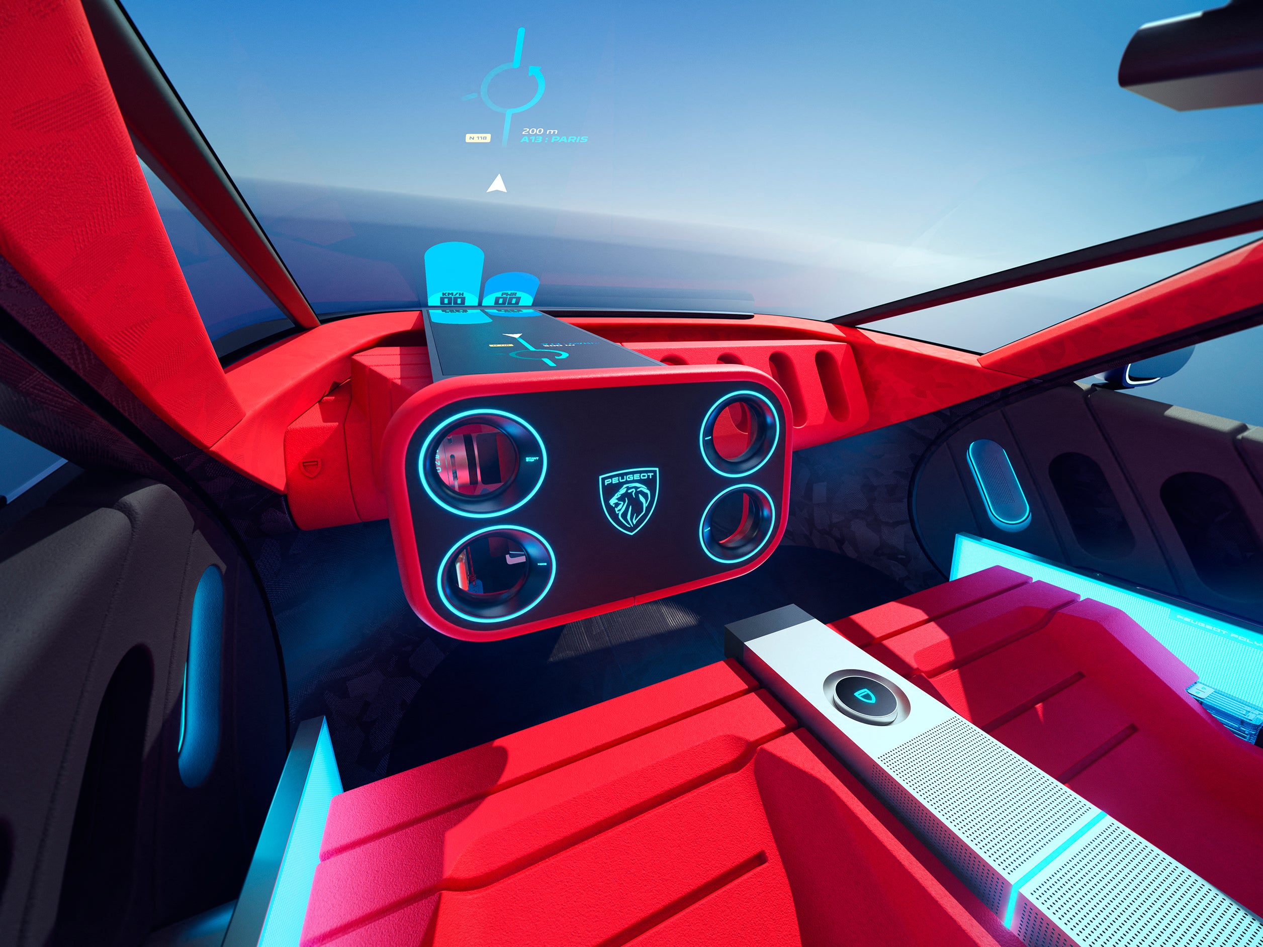 The i-Cockpit has been pushed into new territory, with the windscreen acting as a full infotainment display thanks to a vast Micro-LED panel behind the Hypersquare controller. Removing conventional dashboard screens frees up cabin space and gives the driver a 24cm-by-74cm projected image – equivalent to a 31-inch display – directly in their line of sight. This system supports different visual environments depending on whether the car is stationary or in motion, and Peugeot has designed lighting and animations that synchronise both inside and outside the vehicle.