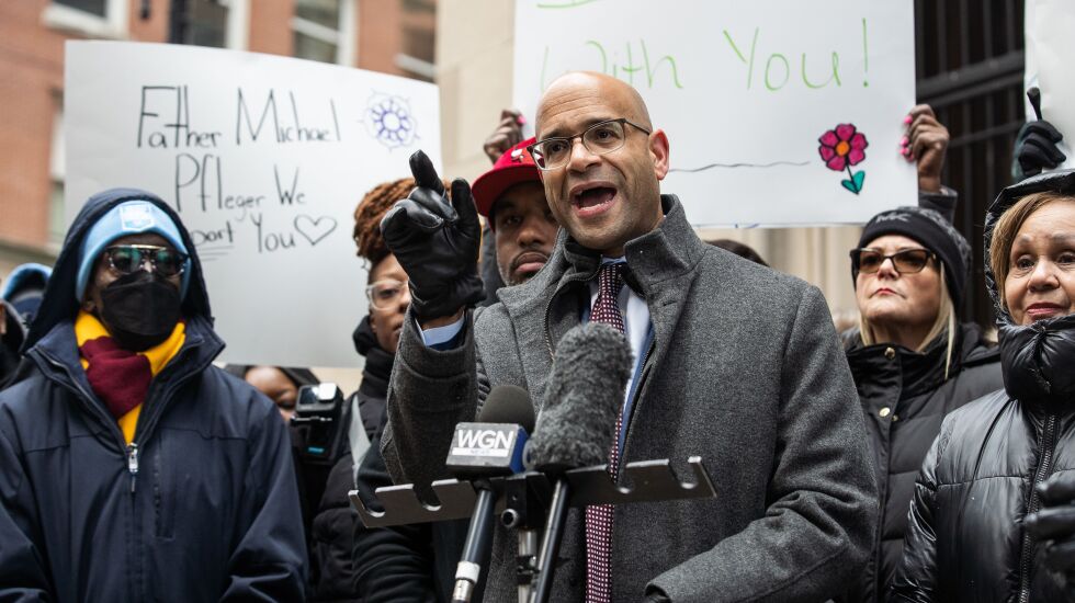 “It’s like they’re guilty before they can stand trial,” said Kendrea Atkins, 45, who said she’s known Pfleger for 20 years and works for an organization he helped found for former felons.