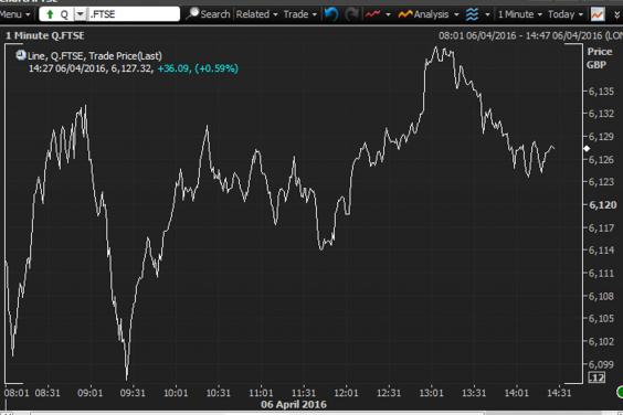 The index was up 0.6 per cent or 34.76 points at 6,133, with pharmaceutical companies Shire and AstraZeneca at the top of the leader board, up by 3.2 per cent and 2.9 per cent respectively.