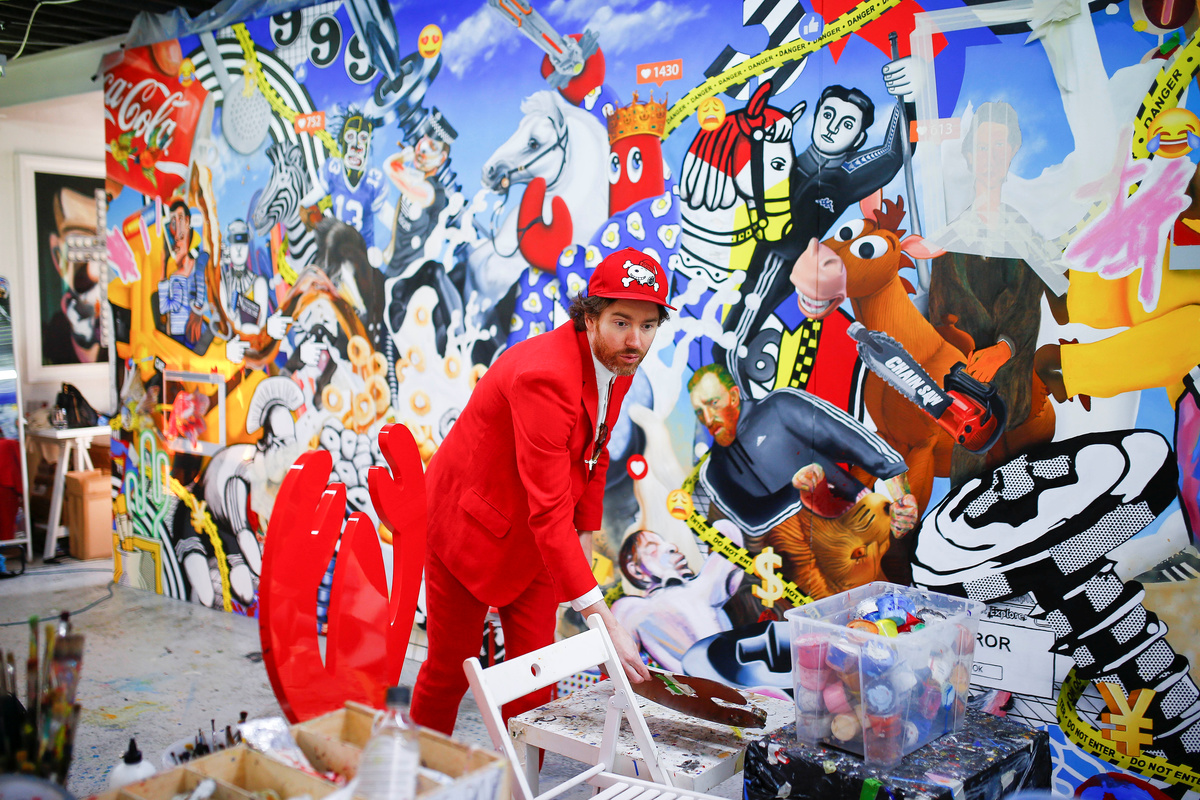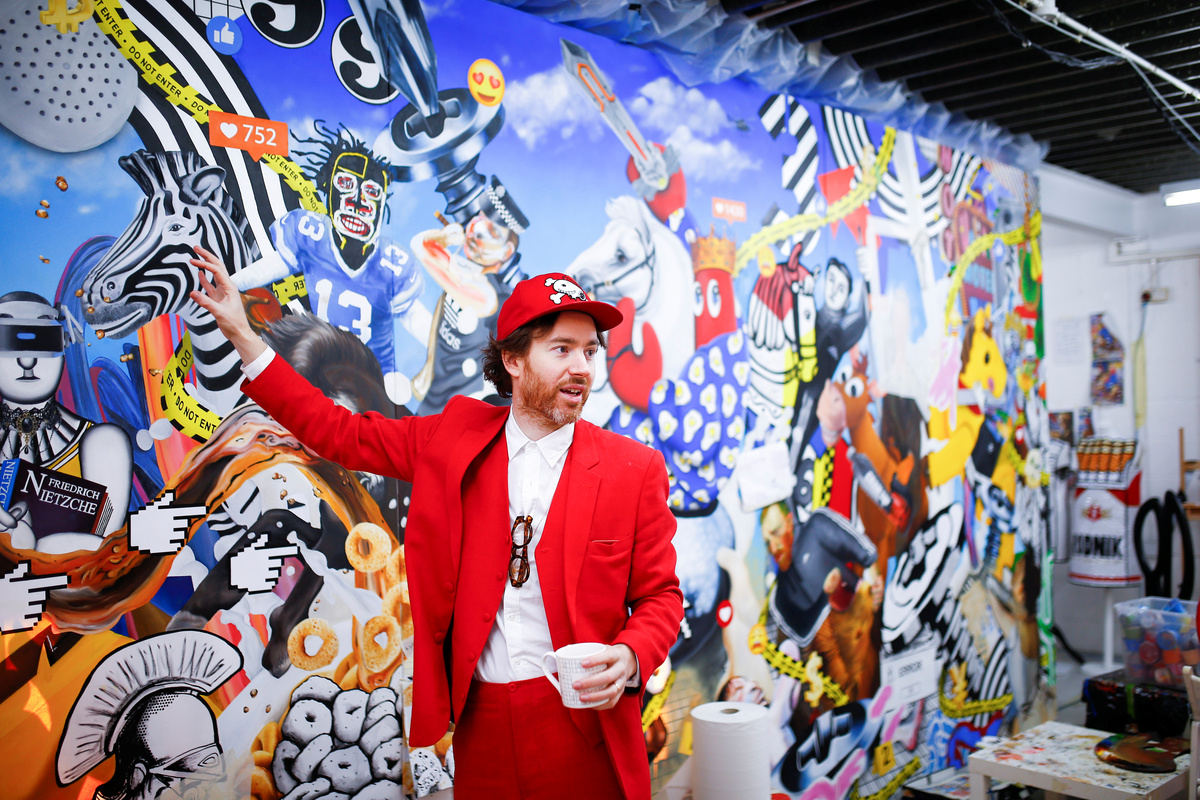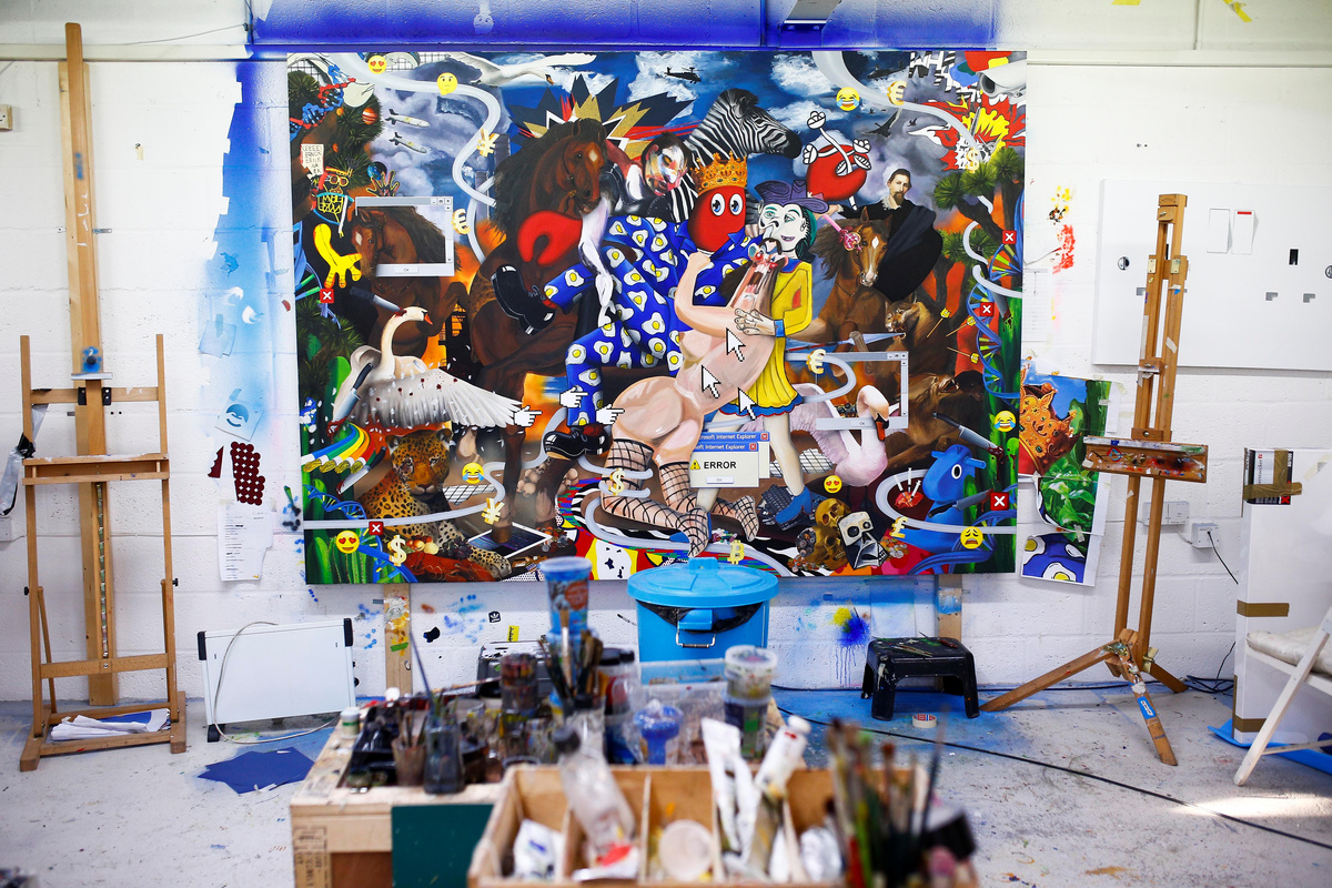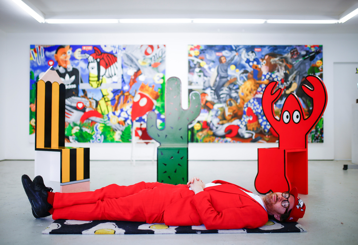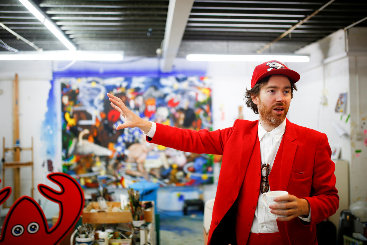 Fashion designer and artist Philip Colbert stands next to artwork at his studio in Shoreditch, London, Britain December 13, 2018. Picture taken December 13, 2018. REUTERS/Henry NichollsFashion designer and artist Philip Colbert lies at his studio in Shoreditch, London, Britain December 13, 2018. Picture taken December 13, 2018. REUTERS/Henry NichollsThe artwork by Philip Colbert is on display at his studio in Shoreditch, London, Britain December 13, 2018. Picture taken December 13, 2018. REUTERS/Henry NichollsArtwork by Philip Colbert is on display at his studio in Shoreditch, London, Britain December 13, 2018. Picture taken December 13, 2018. REUTERS/Henry NichollsAn artist applies finishing touches to the artwork by Philip Colbert on display at his studio in Shoreditch, London, Britain December 13, 2018. Picture taken December 13, 2018. REUTERS/Henry NichollsFashion designer and artist Philip Colbert gestures at his studio in Shoreditch, London, Britain December 13, 2018. Picture taken December 13, 2018. REUTERS/Henry NichollsFashion designer and artist Philip Colbert sits at his studio in Shoreditch, London, Britain December 13, 2018. Picture taken December 13, 2018. REUTERS/Henry NichollsFashion designer and artist Philip Colbert sits at his studio in Shoreditch, London, Britain December 13, 2018. Picture taken December 13, 2018. REUTERS/Henry NichollsThe artwork by Philip Colbert is on display at his studio in Shoreditch, London, Britain December 13, 2018. Picture taken December 13, 2018. REUTERS/Henry NichollsThe artwork by Philip Colbert is on display at his studio in Shoreditch, London, Britain December 13, 2018. Picture taken December 13, 2018. REUTERS/Henry Nicholls