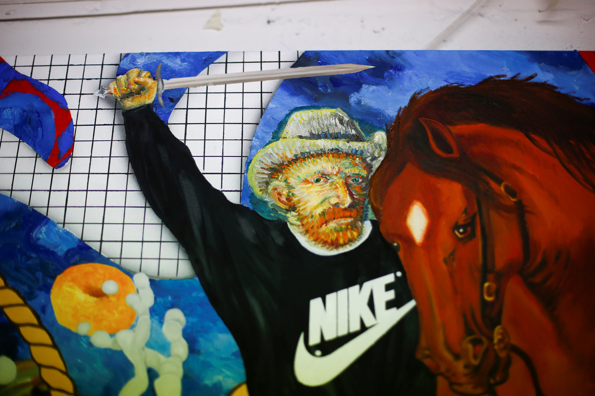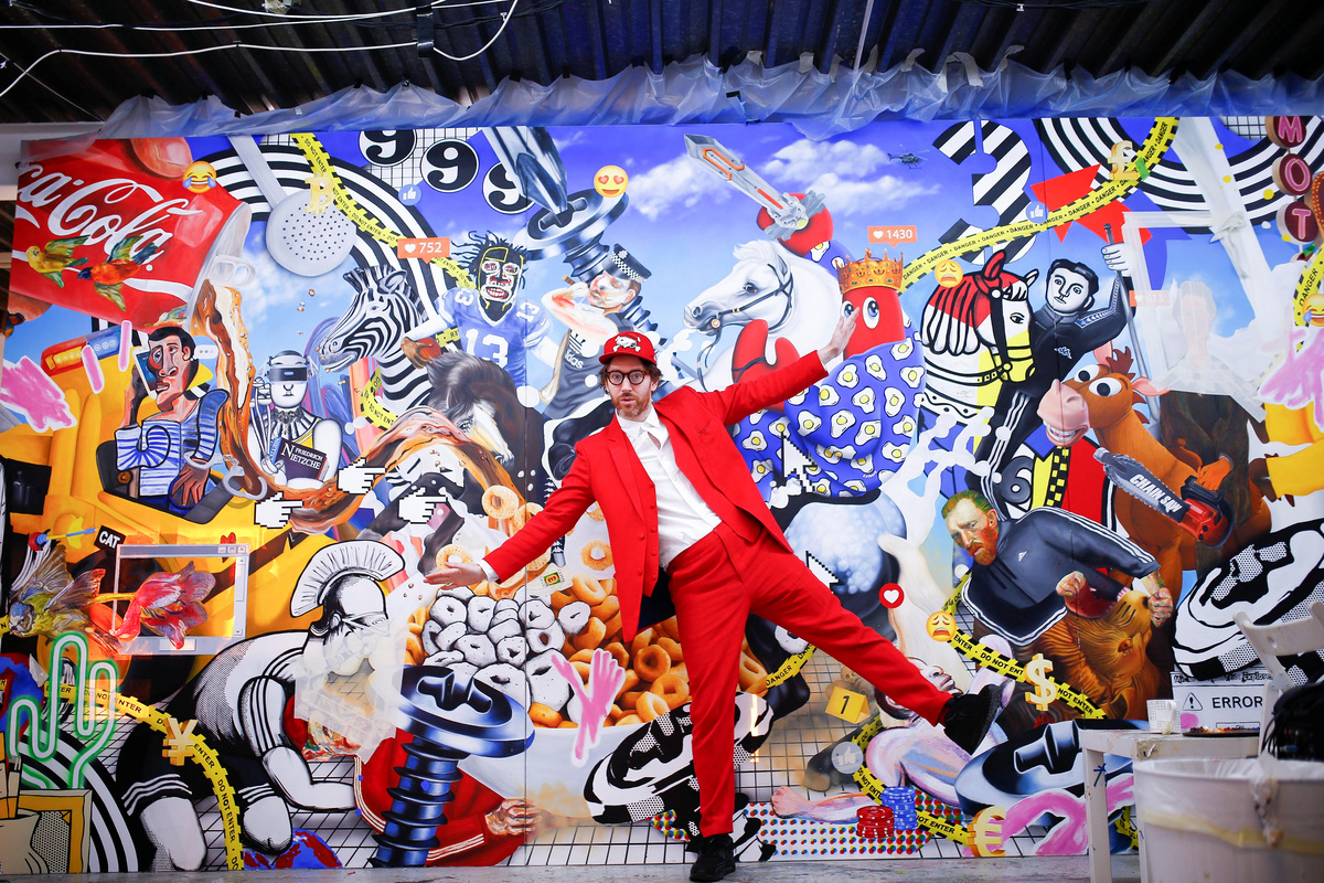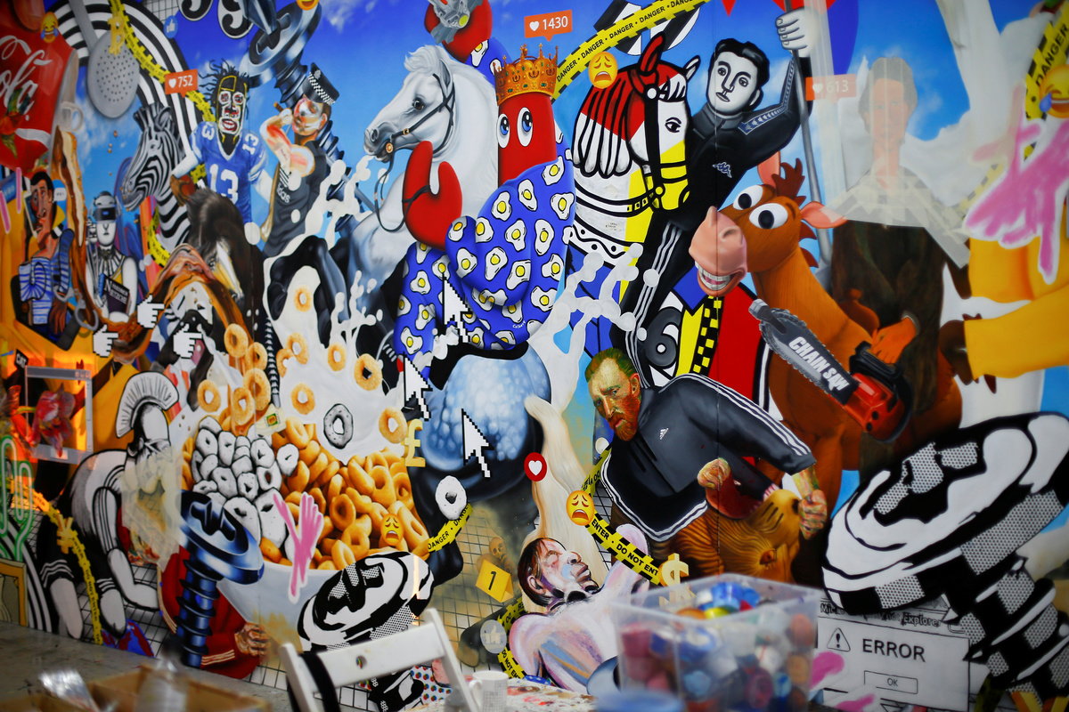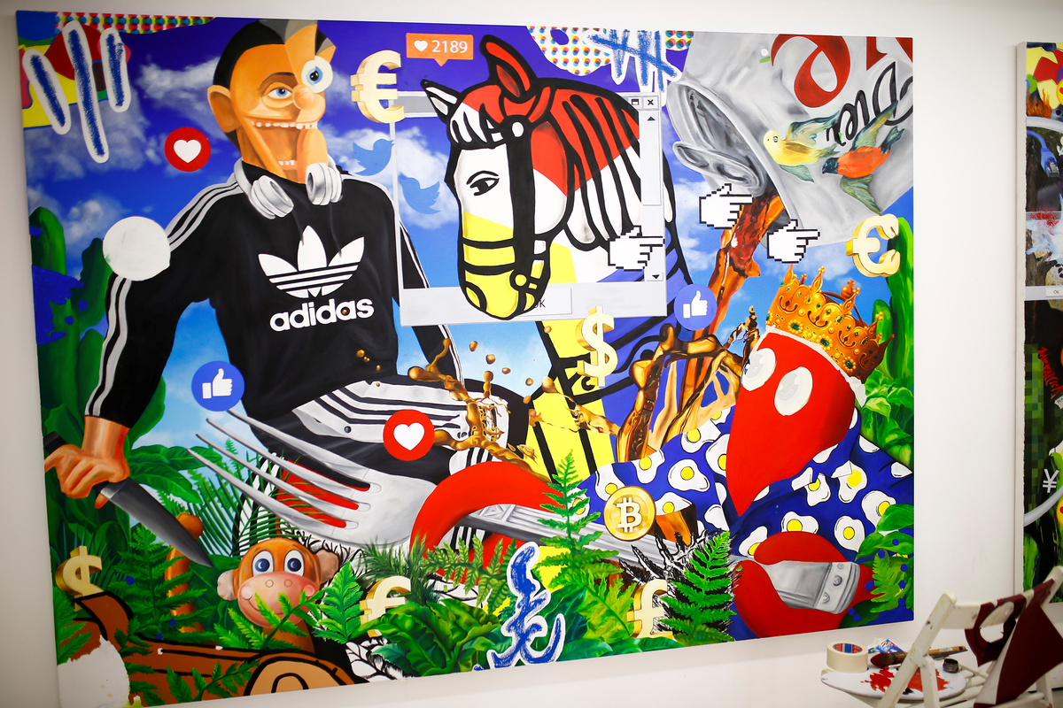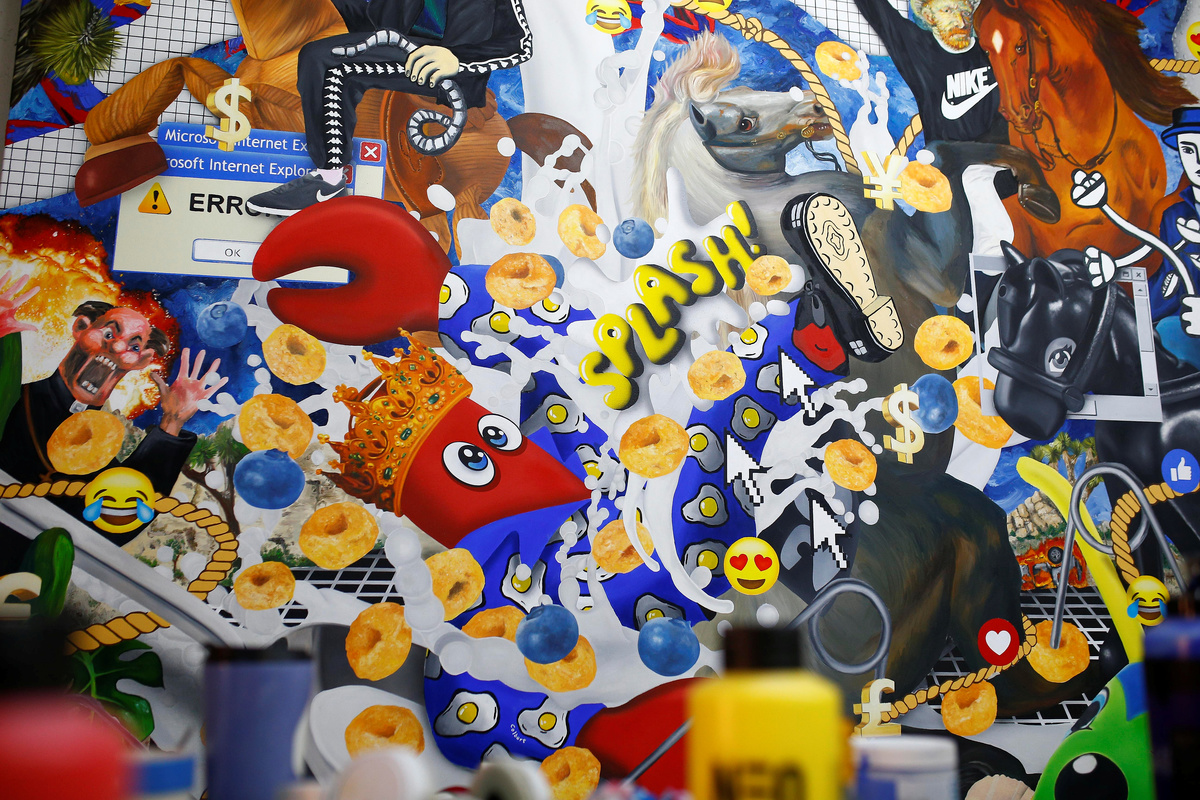 Fashion designer and artist Philip Colbert stands next to artwork at his studio in Shoreditch, London, Britain December 13, 2018. Picture taken December 13, 2018. REUTERS/Henry NichollsFashion designer and artist Philip Colbert lies at his studio in Shoreditch, London, Britain December 13, 2018. Picture taken December 13, 2018. REUTERS/Henry NichollsThe artwork by Philip Colbert is on display at his studio in Shoreditch, London, Britain December 13, 2018. Picture taken December 13, 2018. REUTERS/Henry NichollsArtwork by Philip Colbert is on display at his studio in Shoreditch, London, Britain December 13, 2018. Picture taken December 13, 2018. REUTERS/Henry NichollsAn artist applies finishing touches to the artwork by Philip Colbert on display at his studio in Shoreditch, London, Britain December 13, 2018. Picture taken December 13, 2018. REUTERS/Henry NichollsFashion designer and artist Philip Colbert gestures at his studio in Shoreditch, London, Britain December 13, 2018. Picture taken December 13, 2018. REUTERS/Henry NichollsFashion designer and artist Philip Colbert sits at his studio in Shoreditch, London, Britain December 13, 2018. Picture taken December 13, 2018. REUTERS/Henry NichollsFashion designer and artist Philip Colbert sits at his studio in Shoreditch, London, Britain December 13, 2018. Picture taken December 13, 2018. REUTERS/Henry NichollsThe artwork by Philip Colbert is on display at his studio in Shoreditch, London, Britain December 13, 2018. Picture taken December 13, 2018. REUTERS/Henry NichollsThe artwork by Philip Colbert is on display at his studio in Shoreditch, London, Britain December 13, 2018. Picture taken December 13, 2018. REUTERS/Henry Nicholls