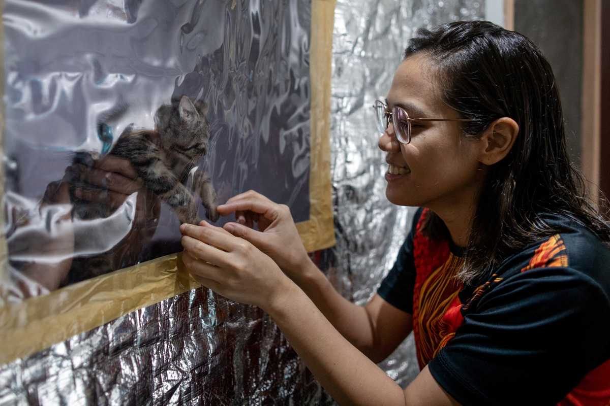 Made out of plastic sheets to keep out the rain, it allows Bastillo to be with her family at a safe distance.