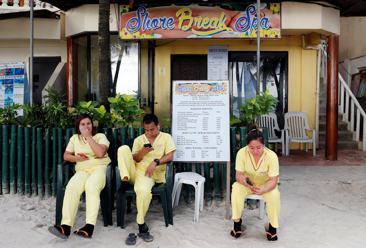 BORACAY, Philippines (Reuters) - Along the shores of Philippines' top holiday island, Boracay, businesses like massage parlors, souvenir stalls, tattoo shops and boat rentals are still thriving while tourists bask in the sun on the powdery white sand, but not for long.