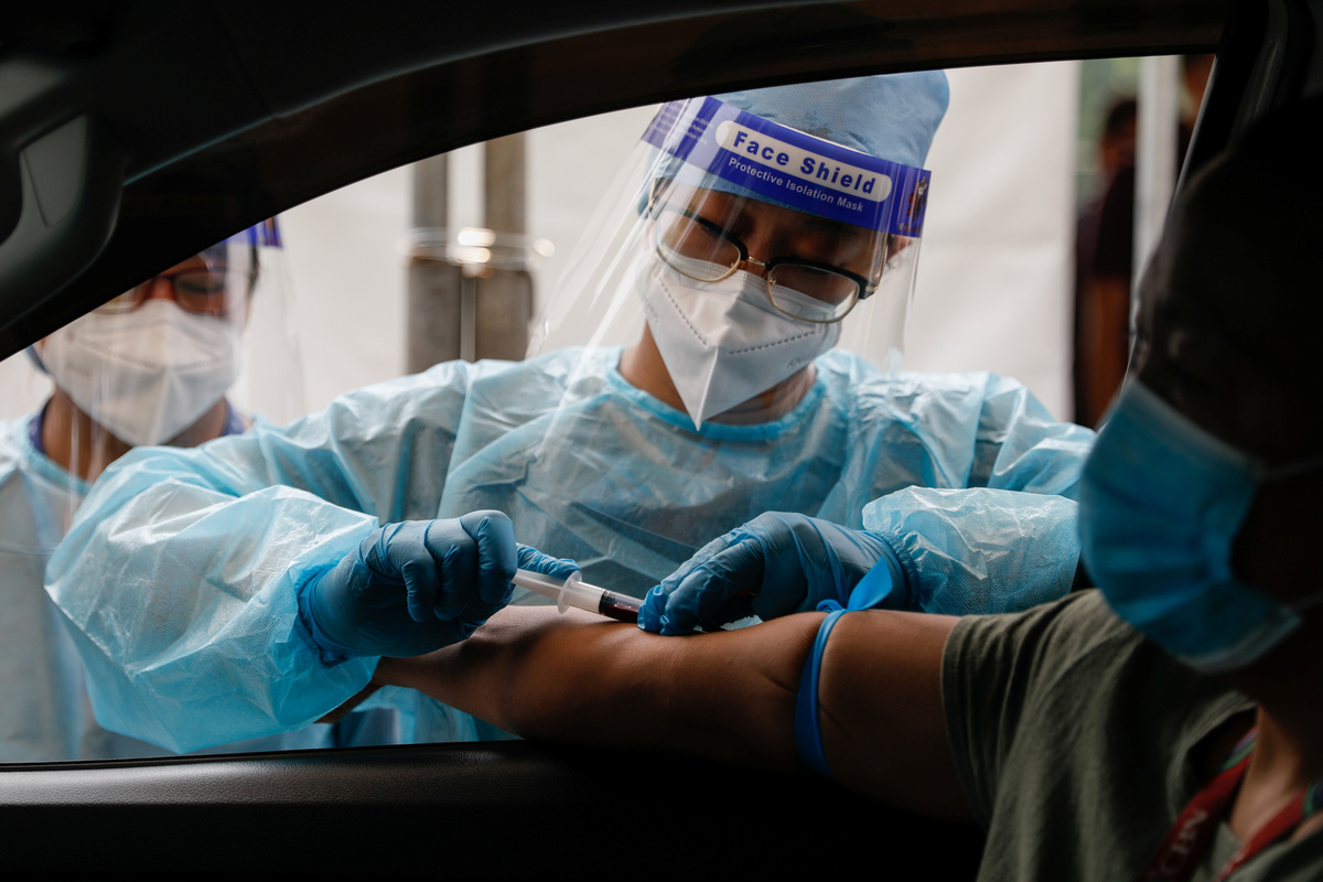 A healthcare worker takes blood sample from a passenger at a coronavirus disease (COVID-19) drive-thru testing center in Manila, Philippines, July 15, 2020. REUTERS/Eloisa LopezA healthcare worker collects blood samples from passengers at a coronavirus disease (COVID-19) drive-thru testing center in Manila, Philippines, July 15, 2020. REUTERS/Eloisa Lopez