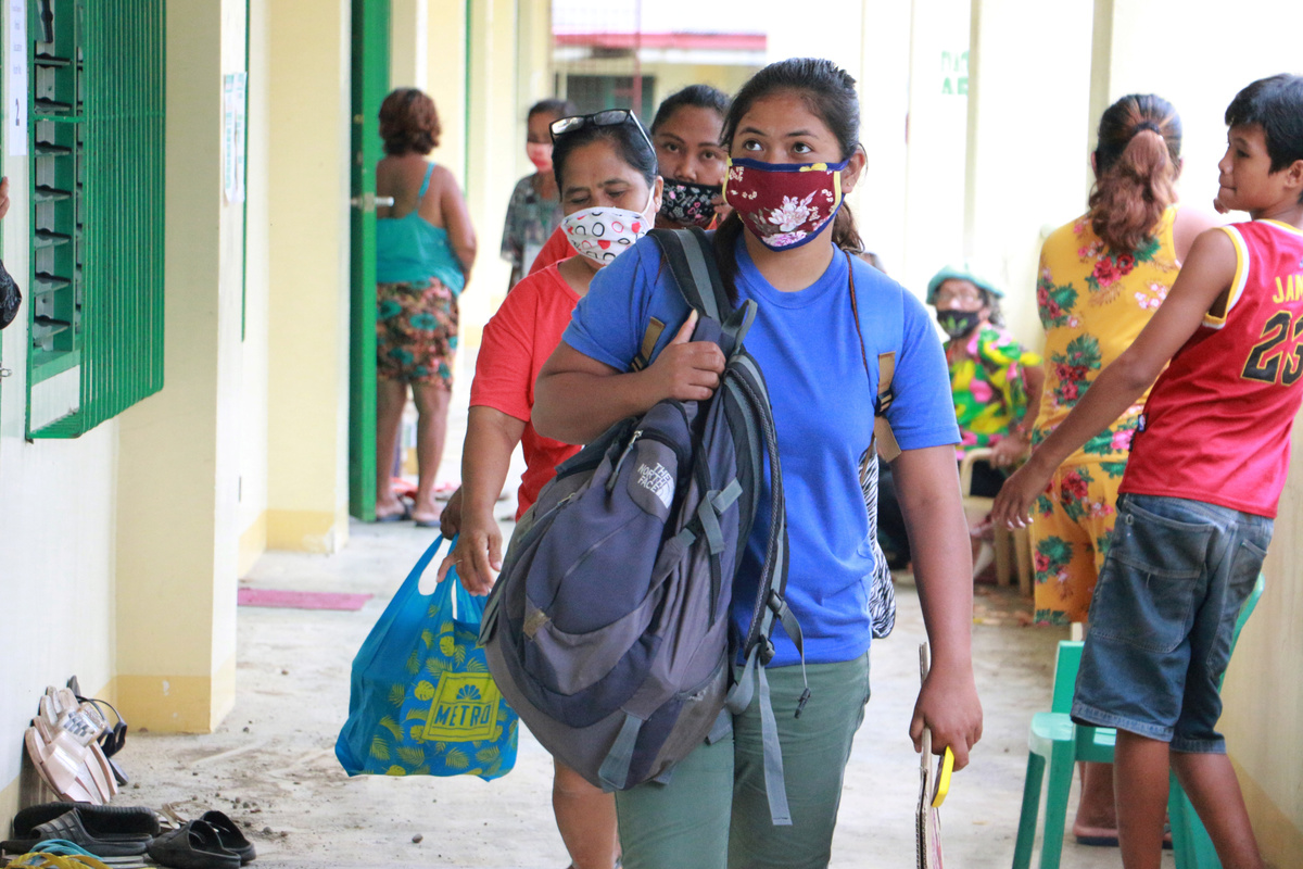 In the town of Buhi in the province of Camarines Sur, hundreds of evacuees were given face masks before they were allowed in the evacuation centres.