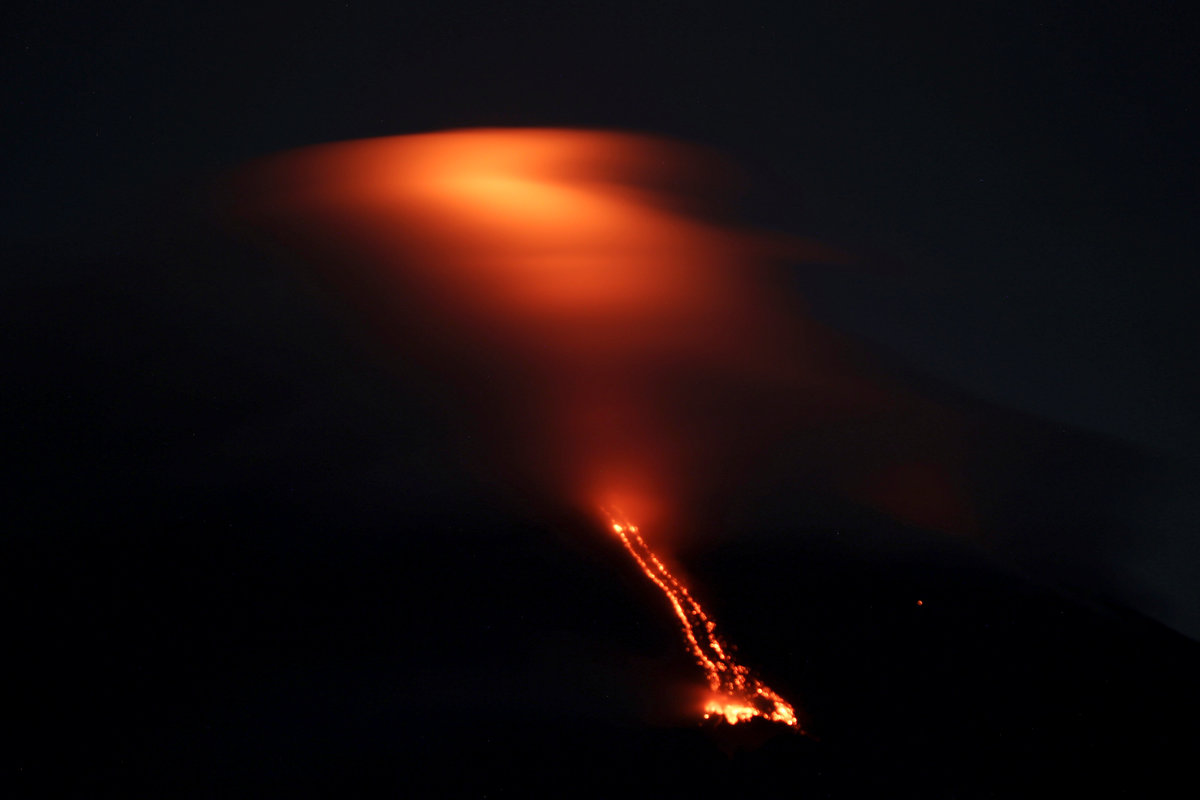 Mayon's most destructive eruption was in February 1814, when lava buried a town and killed 1,200 people. It last erupted in 2014, spewing lava and forcing thousands of people to evacuate.