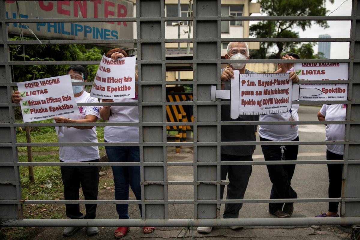 "You truly are the heroes during this time of the pandemic so it is just right that you be the first in line to receive the vaccines," Presidential Spokesman Harry Roque told health workers.