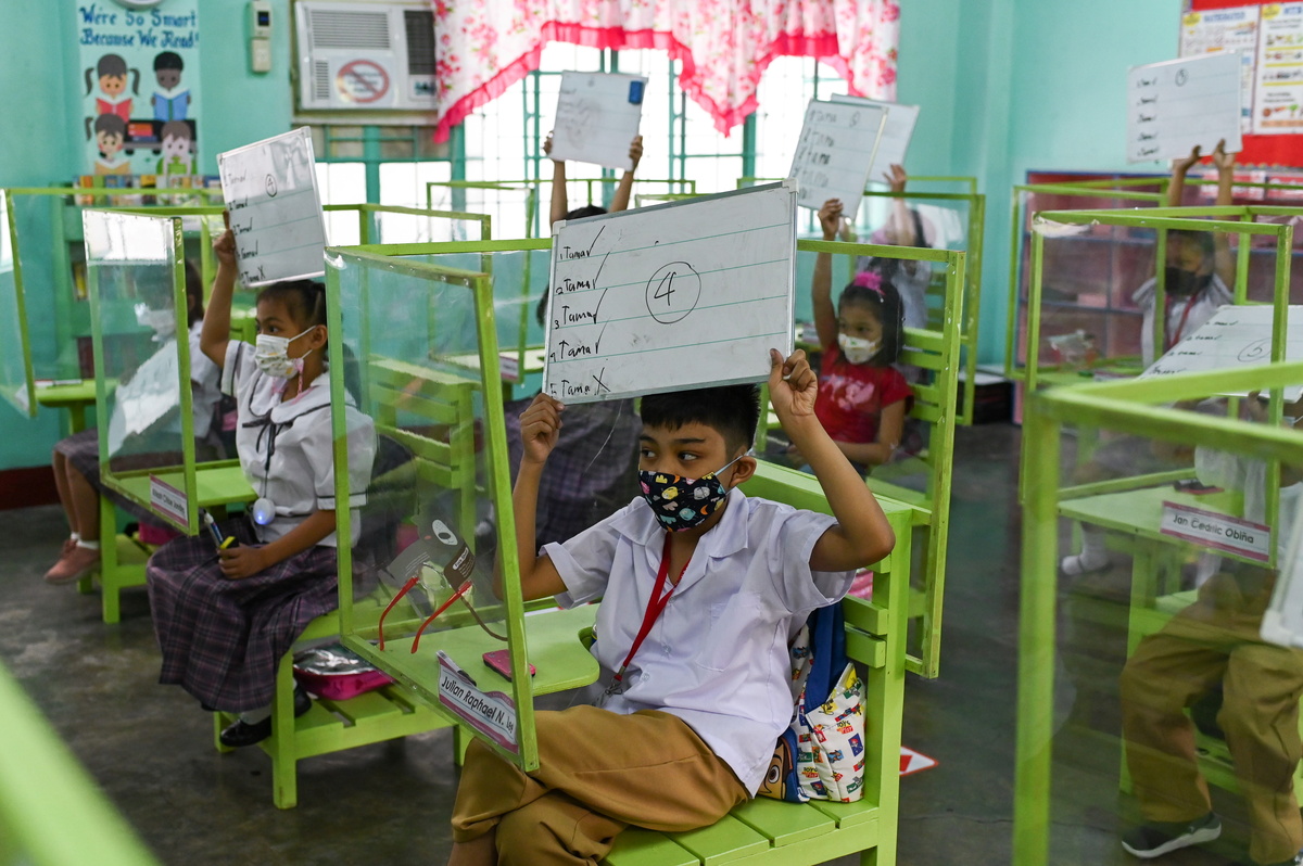 Some children in the Philippines' capital Manila returned to school on Monday after a near two-year suspension as the country, which has imposed some of the world's toughest coronavirus curbs, tries to get life back to normal.