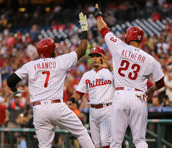 Altherr's go-ahead single in the eighth was followed by a towering three-run homer from Cameron Rupp. It was the most runs the Phillies scored this season. Maikel Franco hit his 20th homer of the season, joining Scott Rolen and Dick Allen as the only Phillies third basemen to reach that mark at age 23 or younger. He later tied the score at 8 with a single in the sixth, which set the stage for Altherr's two-run single two innings later.