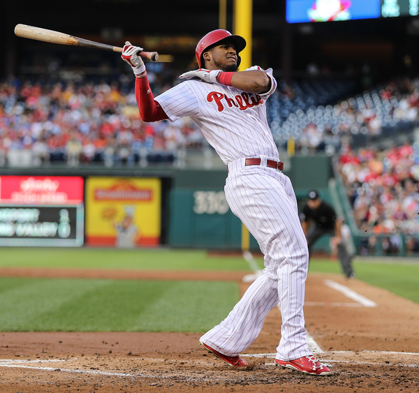 Odubel Herrera started the eighth-inning rally with a one-out single. He hit a ground ball to the shortstop, sprinted up the first-base line, and slid into first base to beat the throw. The Phillies had life. Cesar Hernandez followed with a key double off the wall to bring up Altherr with runners on second and third. He poked a single up the middle and Herrera _ the front of his jersey covered in dirt _ waltzed home. The Phillies refused to go away.