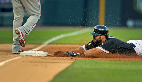 Adam Eaton started it with a triple to left, a ball that Tyler Goeddel misjudged. A groundout scored Eaton. Thompson walked Melky Cabrera and Abreu, which prompted an uncharacteristic first-inning visit from pitching coach Bob McClure. Their conversation was brief. Thompson escaped with a double play on a comebacker.