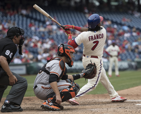 Maikel Franco broke a 7-7 tie with a solo home run in the eighth inning off Derek Law, and one out later Freddy Galvis added his second round-tripper of the game for his first multi-homer game. He became the first Phillie to homer from both sides of the plate in a game since Jimmy Rollins on July 20, 2011, against Chicago.
