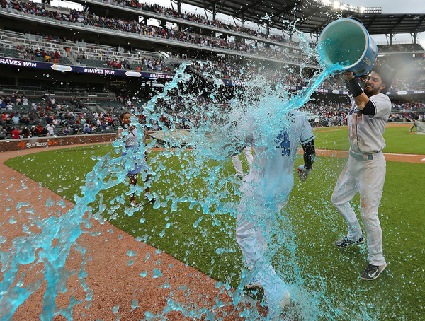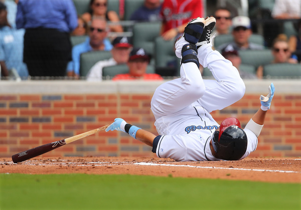 Derek Dietrich followed with another single _ that made it four hits, two walks by the first seven batters of the inning _ before Foltynewicz struck out A.J. Ellis and got JT Riddle on a fly-out to end the inning. But the damage was done and it was a two-run deficit on a day when the Braves had only one hit to that point of the game and had advanced a runner past first base in only one inning.
