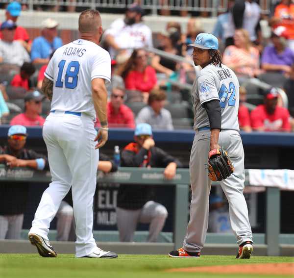 For six innings Sunday, the Braves appeared headed for a fifth offensively challenged loss in six home games and Marlins starter Jose Urena was in line for his fourth consecutive win.