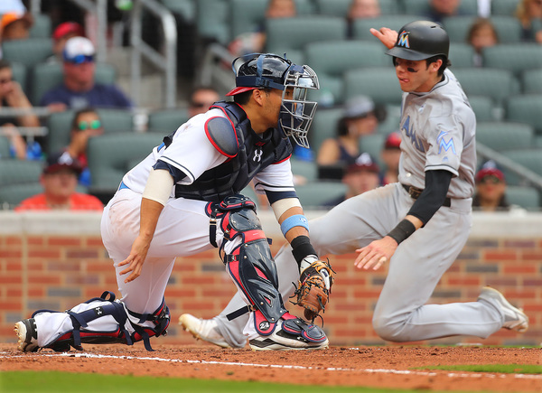 The only scoring before the Braves' four-run seventh inning came on Justin Bour's two-run single in the sixth against Braves starter Mike Foltynewicz, who allowed seven hits, two runs and two walks with four strikeouts in six innings.