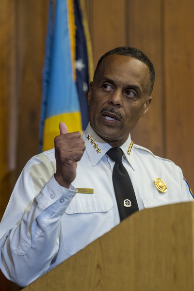 At an 11 a.m. news conference at Police Headquarters, Ross said Ryan Pownall, a 12-year veteran of the force, would officially lose his job next month. Ross said Pownall committed "serious" departmental violations when he shot David Jones in the back. He said Pownall used "poor judgment" by firing at Jones with witnesses in his car as Jones ran away on a busy street.