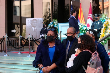 Mayor Kate Gallego said it was a rare occurrence to have someone laid in state in the city. But she also said it was an honor for her and the city to celebrate his life in front of a building named after him — one of only two buildings in Phoenix named for city officials.