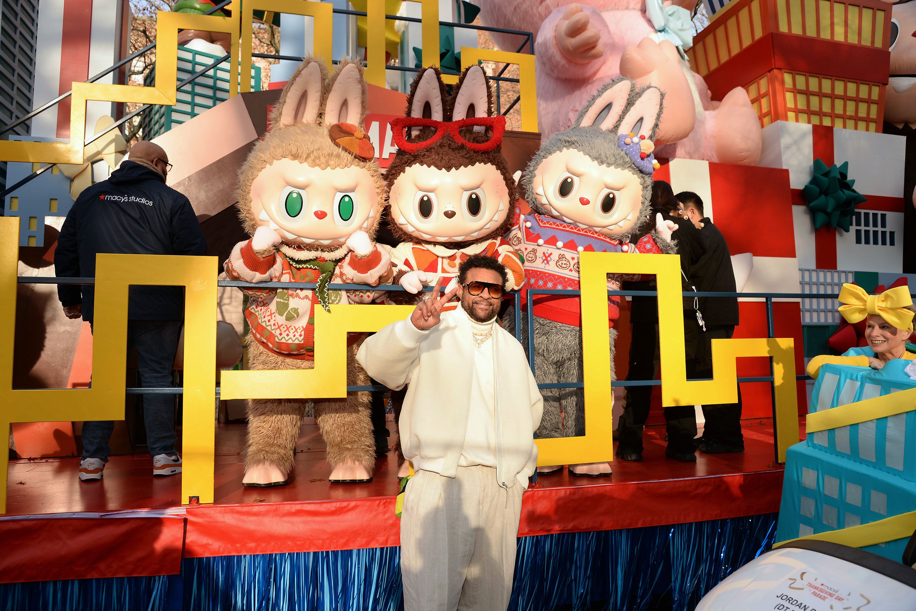 Musician Shaggy with Labubu in front of Pop Mart's "Pop City" float. Photo: Michael Simon/Getty Images for Pop Mart