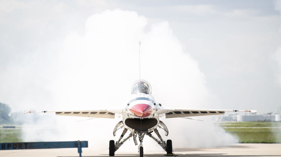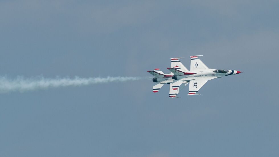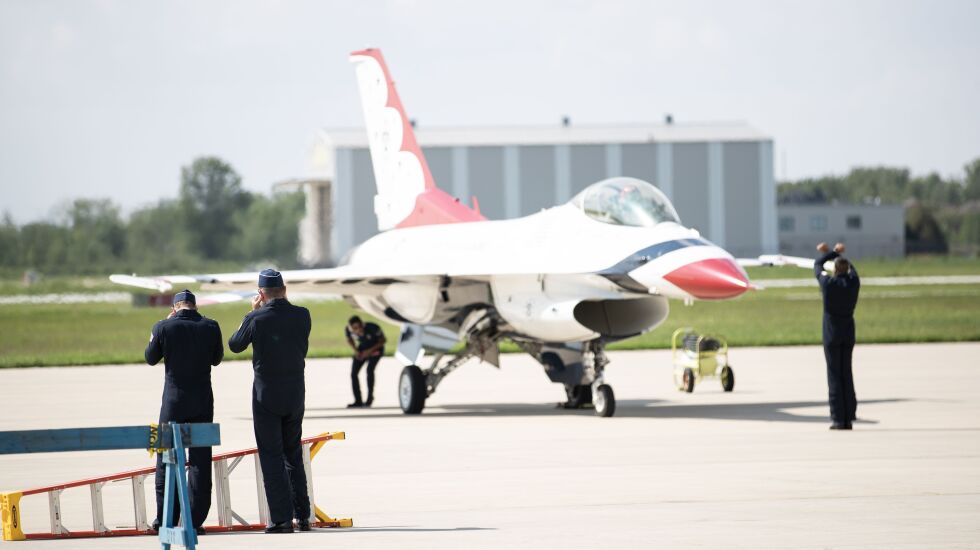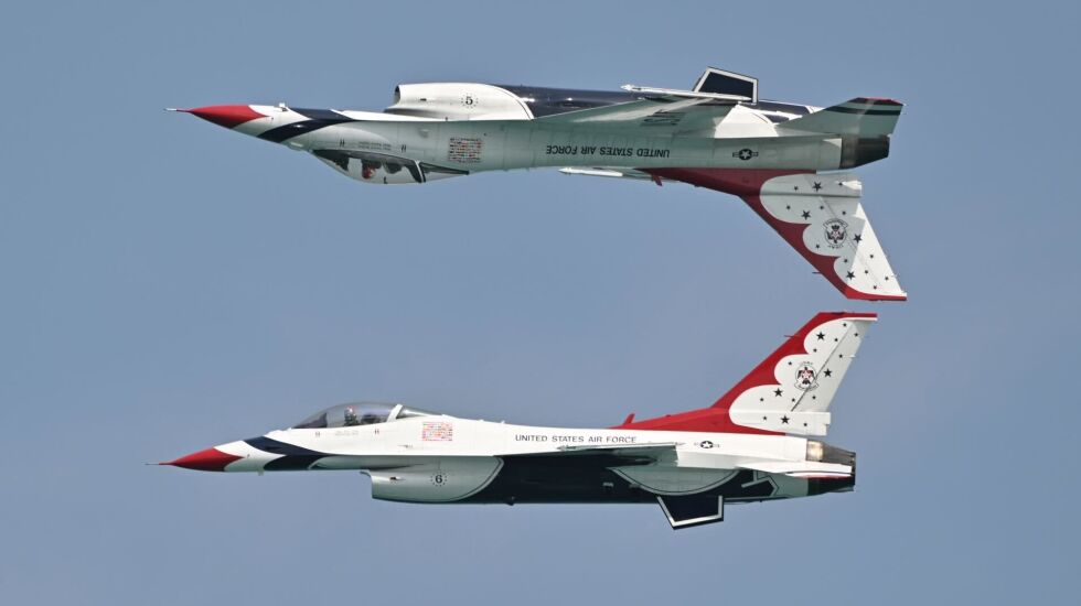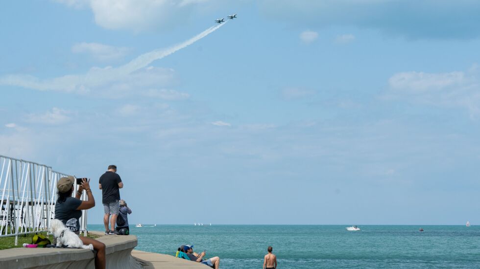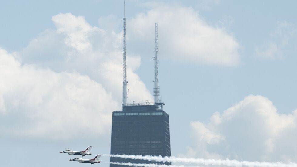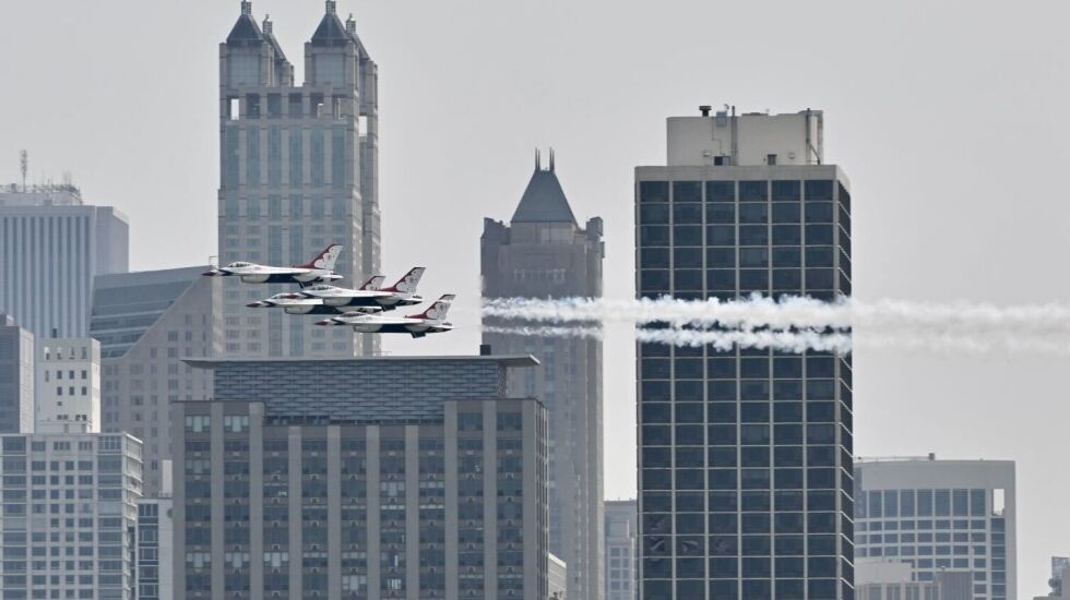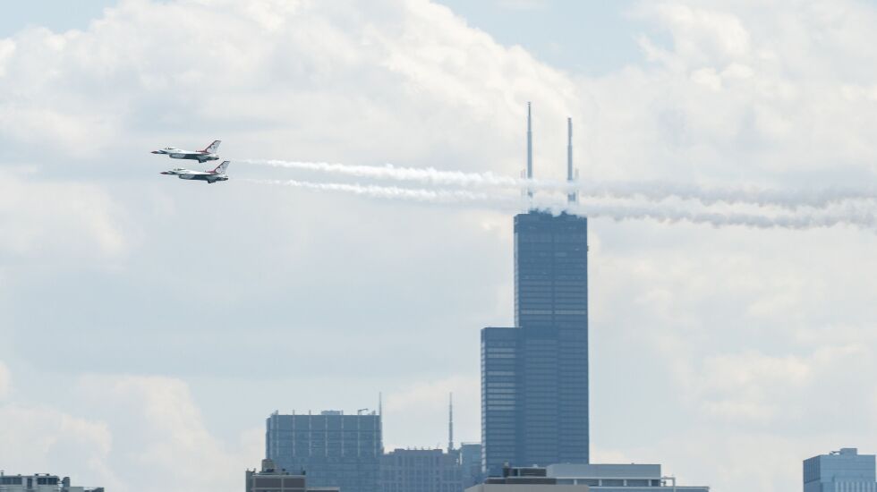 The skies of Chicago were filled with the sights and sometimes very loud sounds of the U.S. military Thursday and Friday as preparations move ahead for the 2023 Air and Water Show this weekend.