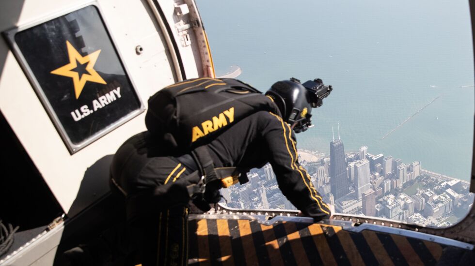 The U.S. Army also invited a Sun-Times photographer to join the Golden Knights for their warmup run Friday. Check out photos from the Air and Water Show rehearsals below.