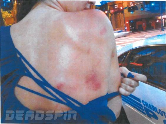Deadspin has published a gallery of graphic images of Nicole Holder, 24, Hardy’s former girlfriend. The images show Holder with bruises across her back, under her chin and along her arms and legs.