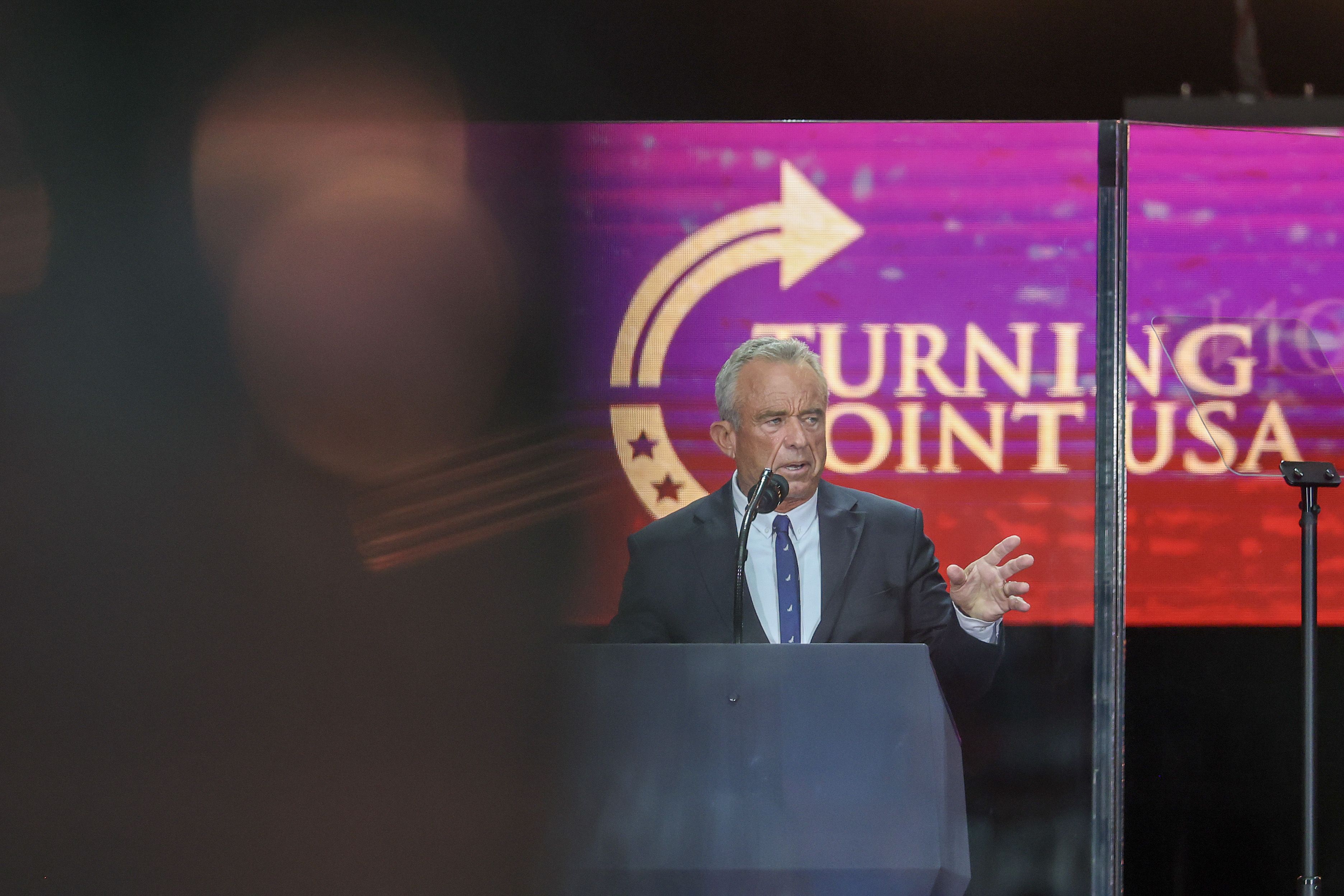 Health and Human Services Secretary Robert Kennedy Jr. remembered Kirk during the memorial service as a free speech champion who "changed the trajectory of history." Photo: Eric Thayer/Getty Images