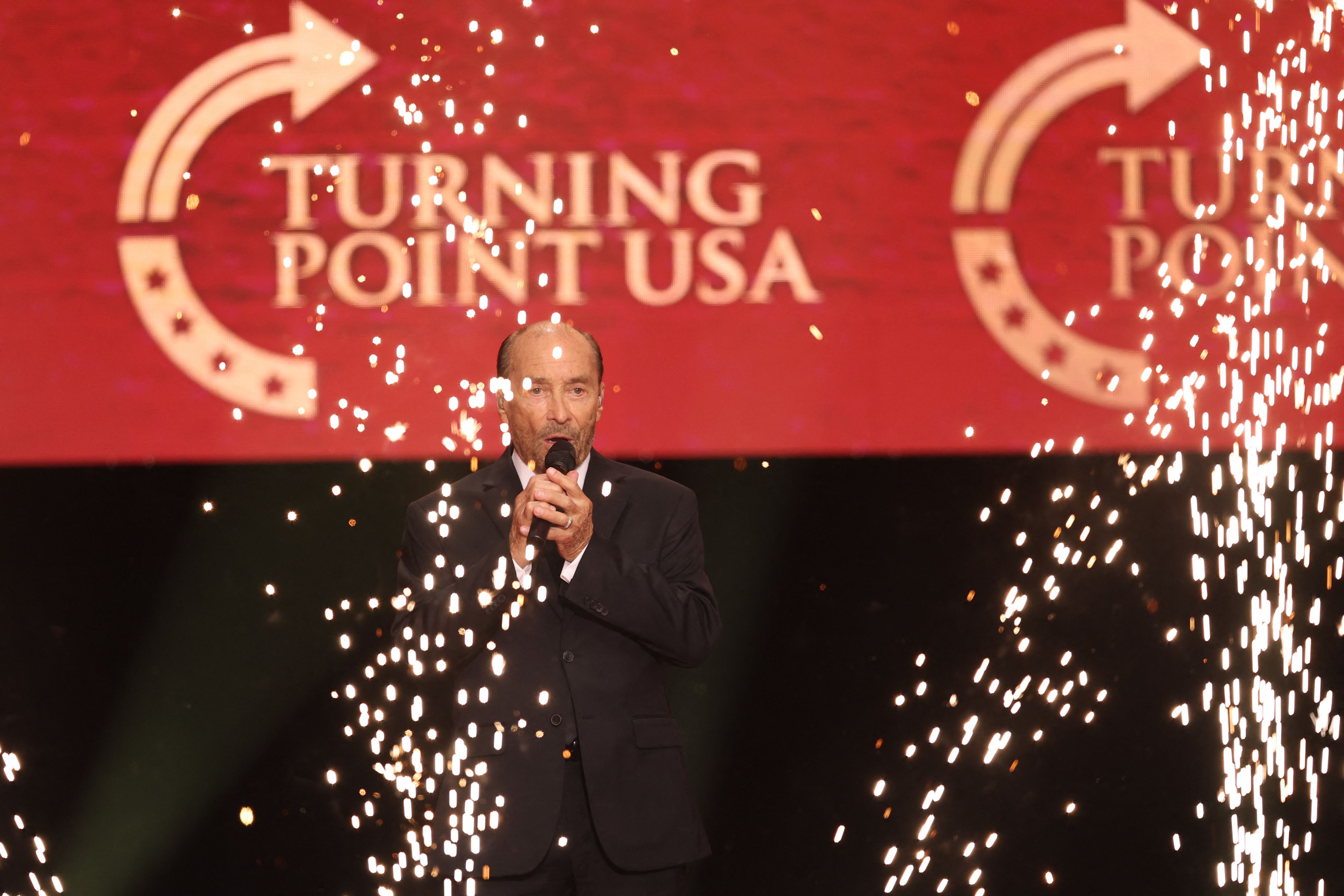 Singer Lee Greenwood performs during Kirk's memorial service. Photo: Patrick T. Fallon /AFP via Getty Images