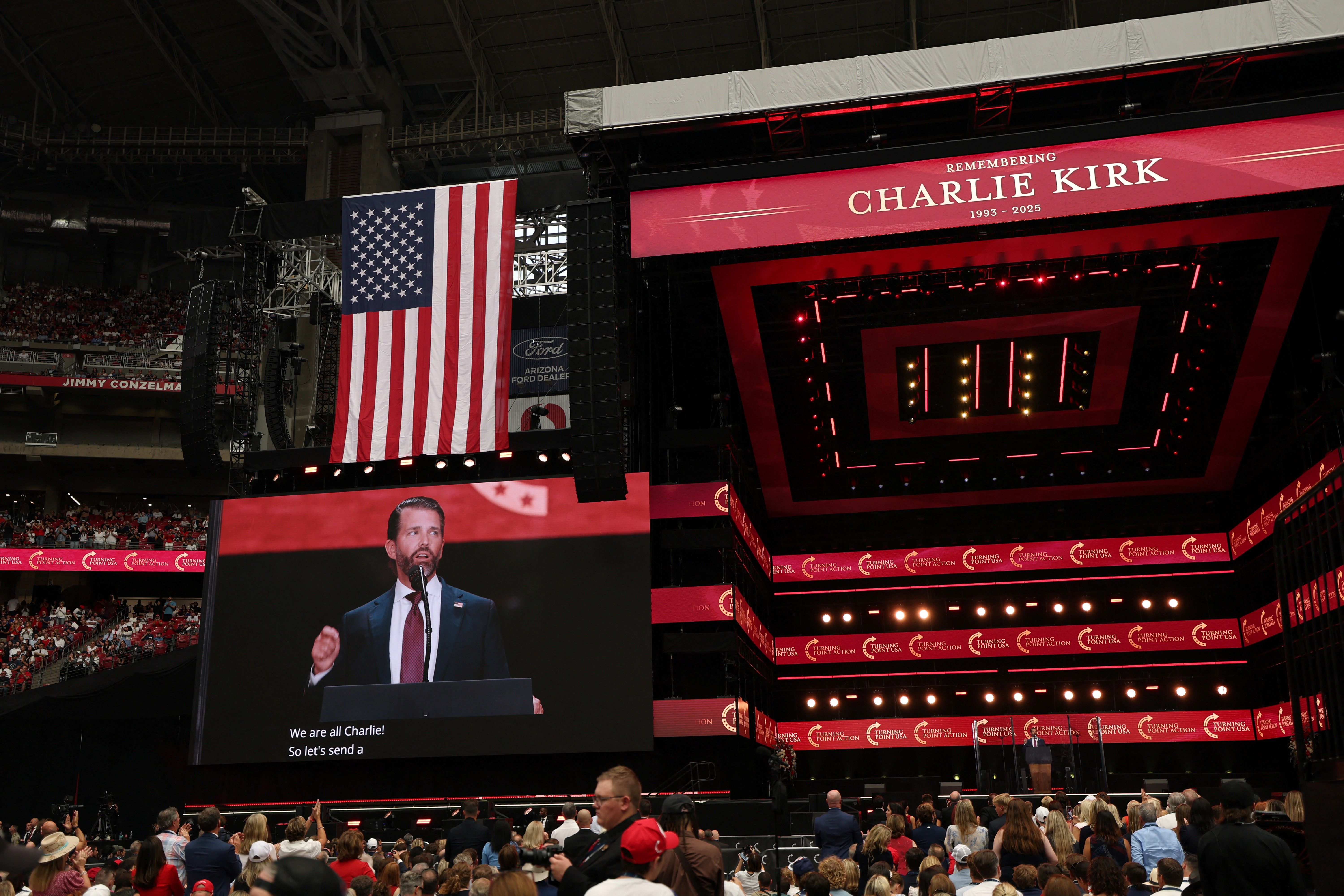 Charlie Kirk's memorial service at State Farm Stadium was attended by tens of thousands of people in Glendale, Arizona, Sunday.