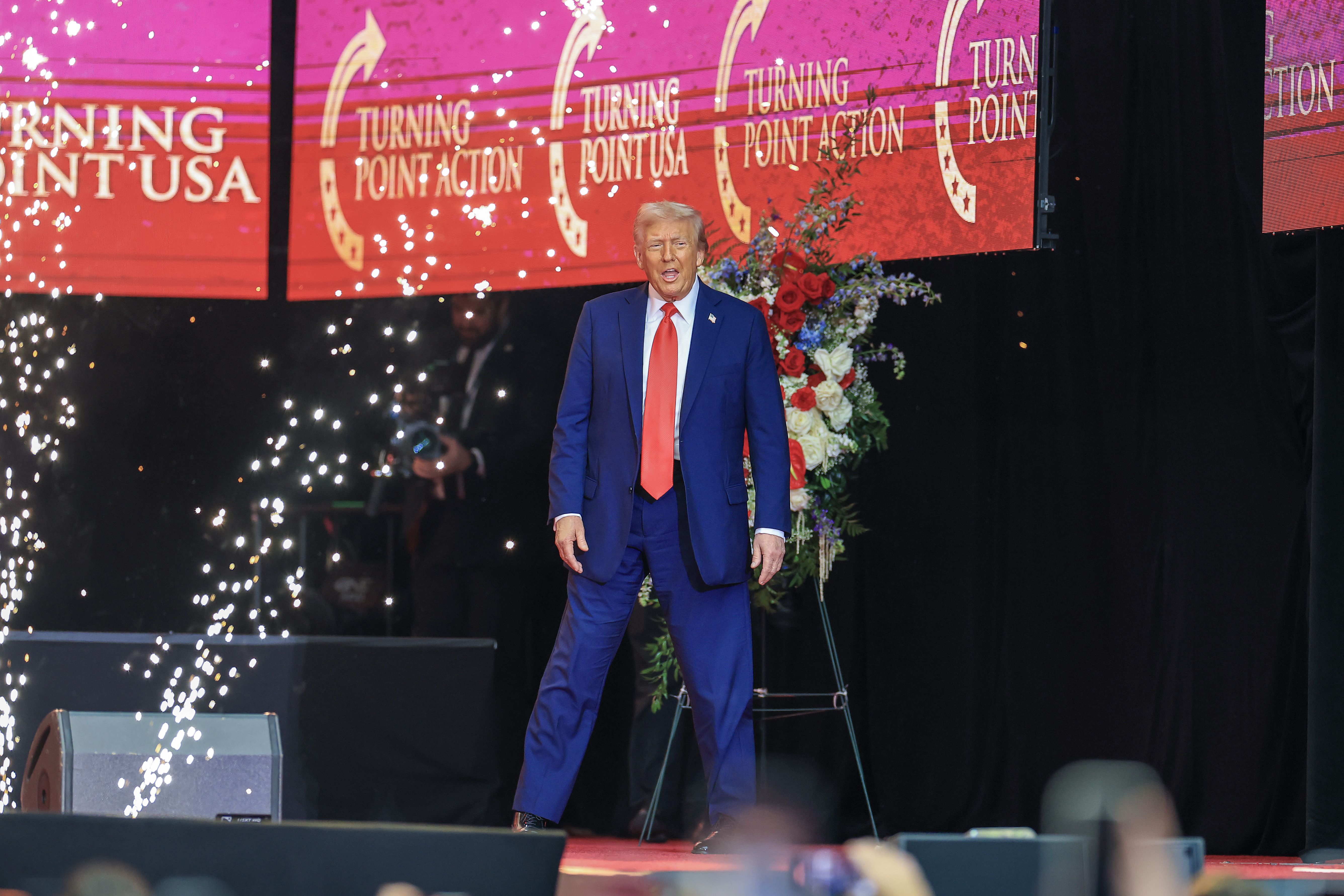 "He's a martyr now for America's freedom," Trump said during his tribute to Kirk onstage at the stadium. Photo: Win McNamee/Getty Images