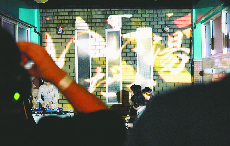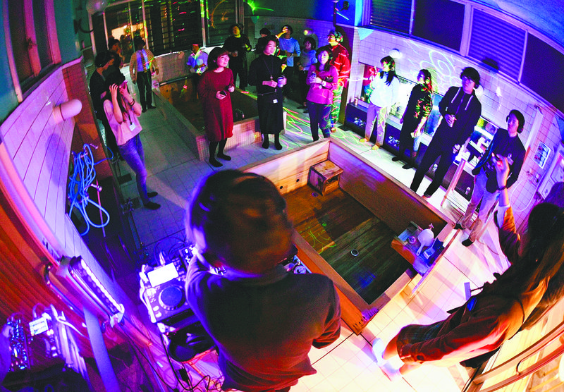 The space usually reserved for washing was transformed into a dance floor -- the ceiling and walls were decorated using projection mapping and a DJ booth was set up.