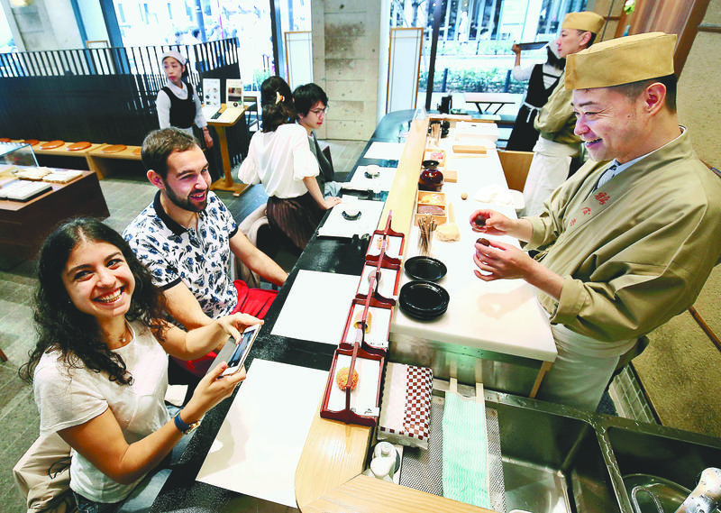 Wataru Kono, a 24-year-old customer from Chiba Prefecture, said: "I was surprised at the elaborate decorations on the wagashi -- even the stem of a persimmon. I never knew freshly made wagashi had such a pleasant texture."