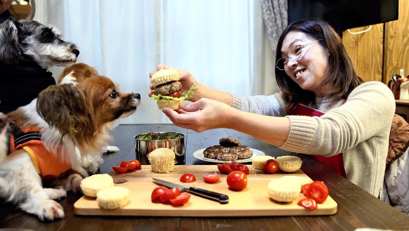 "The cooking is surprisingly easy. I'm glad the food is good for dogs," longtime participant Miki Hosoya, 48, a homemaker from Nakano Ward, Tokyo, said while holding her 5-year-old miniature schnauzer.