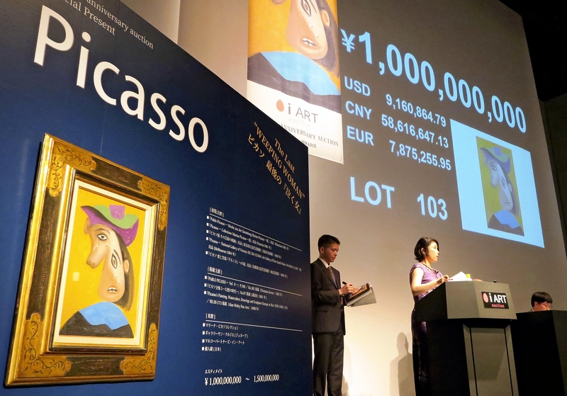 "Weeping Woman," an oil painting by Pablo Picasso (1881-1973), has sold for 1 billion yen in Tokyo, setting a new national record for a winning bid at a domestic company's art auction.