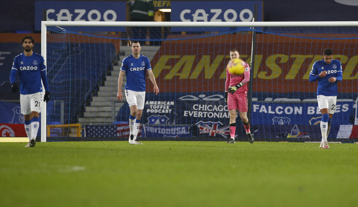 With Everton hanging on to the lead given them by James Rodriguez in the first half, England keeper Pickford let Youri Tielemans's shot squirm into the net in the 67th minute.