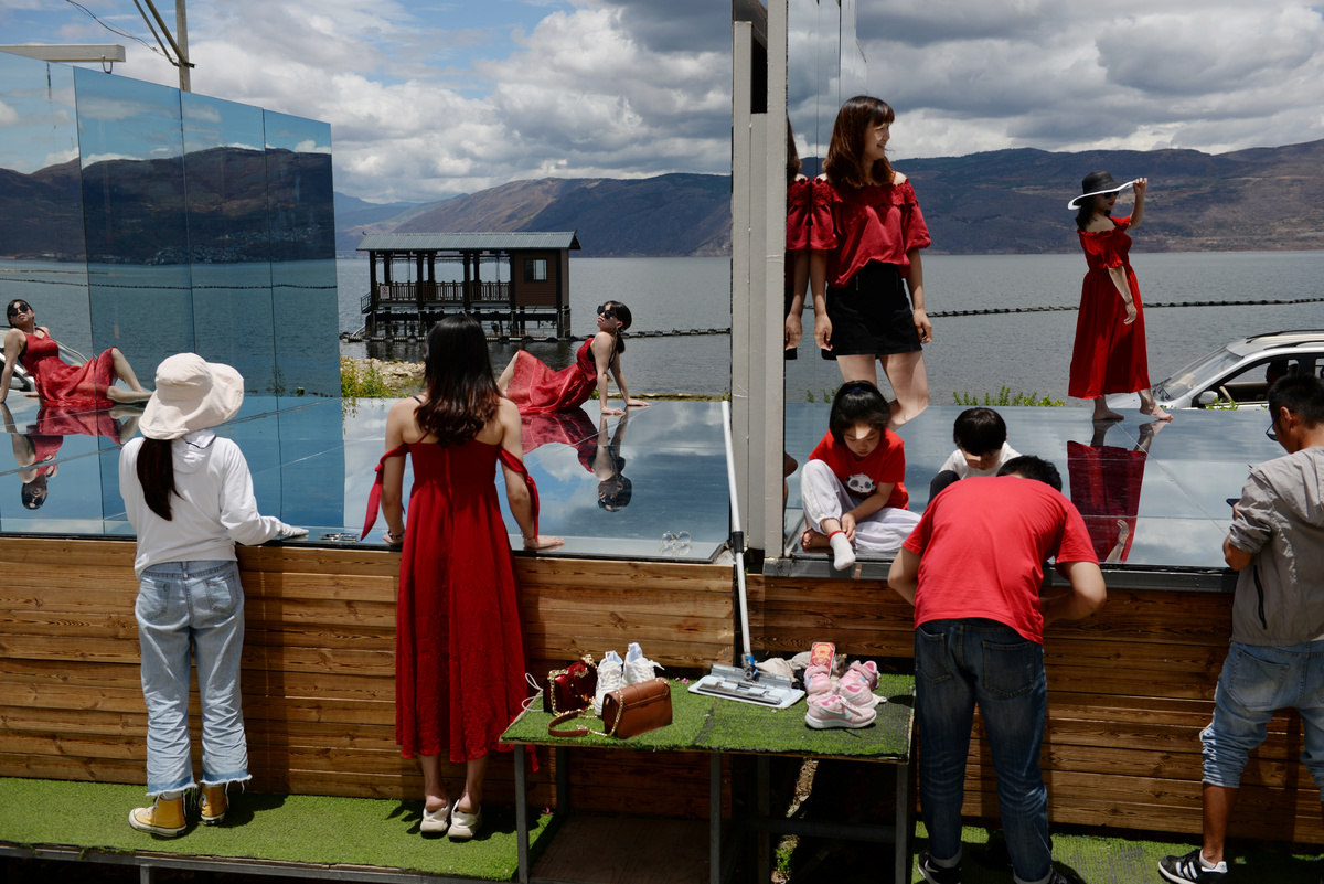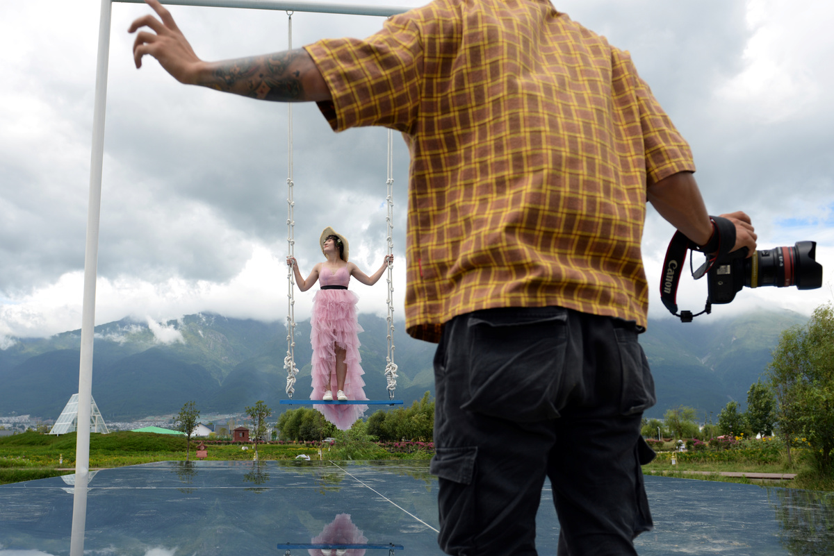 Yan Mengjie poses for photos near Erhai Lake in Dali Bai Autonomous Prefecture, Yunnan province, China June 16, 2019. Picture taken June 16, 2019. REUTERS/Tingshu WangA woman poses for photos next to a field of flowers near Erhai Lake in Dali Bai Autonomous Prefecture, Yunnan province, China June 15, 2019. Picture taken June 15, 2019. REUTERS/Tingshu WangA woman poses with a scarf on the top of a car which serves as a prop near Erhai Lake in Dali Bai Autonomous Prefecture, Yunnan province, China June 15, 2019. REUTERS/Tingshu WangTourists walk under a flower-covered walkway which serves as a prop for photoshoots near Erhai Lake in Dali Bai Autonomous Prefecture, Yunnan province, China June 15, 2019. Picture taken June 15, 2019. REUTERS/Tingshu WangQin Weigang sits with his alpacas under a tent as he waits for photo-taking customers near Erhai Lake in Dali Bai Autonomous Prefecture, Yunnan province, China June 15, 2019. Picture taken June 15, 2019. REUTERS/Tingshu WangA man driving a motorbike looks on as tourists pose with props at a photo booth near Erhai Lake in Dali Bai Autonomous Prefecture, Yunnan province, China June 15, 2019. Picture taken June 15, 2019. REUTERS/Tingshu WangA woman jumps up on a bus which serves as a prop for photoshoots near Erhai Lake in Dali Bai Autonomous Prefecture, Yunnan province, China June 15, 2019. Picture taken June 15, 2019. REUTERS/Tingshu WangTourists pose for photos on a mirror platform at a photo booth near Erhai Lake in Dali Bai Autonomous Prefecture, Yunnan province, China June 15, 2019. Picture taken June 15, 2019. REUTERS/Tingshu WangPhotographers are seen in front of a woman sitting on a prop during a photoshoot session near Erhai Lake in Dali Bai Autonomous Prefecture, Yunnan province, China June 16 2019. Picture taken June 16, 2019. REUTERS/Tingshu WangZhang Hongtao, manager of a photo booth, looks at his staff members processing photos for customers near Erhai Lake in Dali Bai Autonomous Prefecture, Yunnan province, China June 15, 2019. Picture taken June 15, 2019. REUTERS/Tingshu WangA photographer directs Zhang Xiaoxia as she poses on a swing above a mirror platform near Erhai Lake in Dali Bai Autonomous Prefecture, Yunnan province, China June 15, 2019. Picture taken June 15, 2019. REUTERS/Tingshu WangWorkers install a mirror platform which will serve as a prop for photoshoots on the top of a building near Erhai Lake in Dali Bai Autonomous Prefecture, Yunnan province, China June 16 2019. Picture taken June 16, 2019. REUTERS/Tingshu WangTourists are seen on the bank of Erhai Lake in Dali Bai Autonomous Prefecture, Yunnan province, China June 16 2019. Picture taken June 16, 2019. REUTERS/Tingshu WangPeople walk past a board showing tourists' photos taken inside an attraction, in front of a fruit stall near Erhai Lake in Dali Bar Autonomous Prefecture, Yunnan province, China June 15, 2019. Picture taken June 15, 2019. REUTERS/Tingshu WangTourists pose for pictures on a mirror platform which serves as a prop for photoshoots near Erhai Lake in Dali Bai Autonomous Prefecture, Yunnan province, China June 15, 2019. Picture taken June 15, 2019. REUTERS/Tingshu WangTourists are seen on the bank of Erhai Lake next to buildings under construction in Dali Bai Autonomous Prefecture, Yunnan province, China June 16 2019. Picture taken June 16, 2019. REUTERS/Tingshu WangWomen ride an electric scooter past props for photoshoots next to a building under construction, near Erhai Lake in Dali Bai Autonomous Prefecture, Yunnan province, China June 15, 2019. Picture taken June 15, 2019. REUTERS/Tingshu WangTourists pose with props for pictures at a photo booth near Erhai Lake in Dali Bai Autonomous Prefecture, Yunnan province, China June 15, 2019. REUTERS/Tingshu WangYan Mengjie sits on a boat as she poses for photos near Erhai Lake in Dali Bai Autonomous Prefecture, Yunnan province, China June 16, 2019. Picture taken June 16, 2019. REUTERS/Tingshu Wang