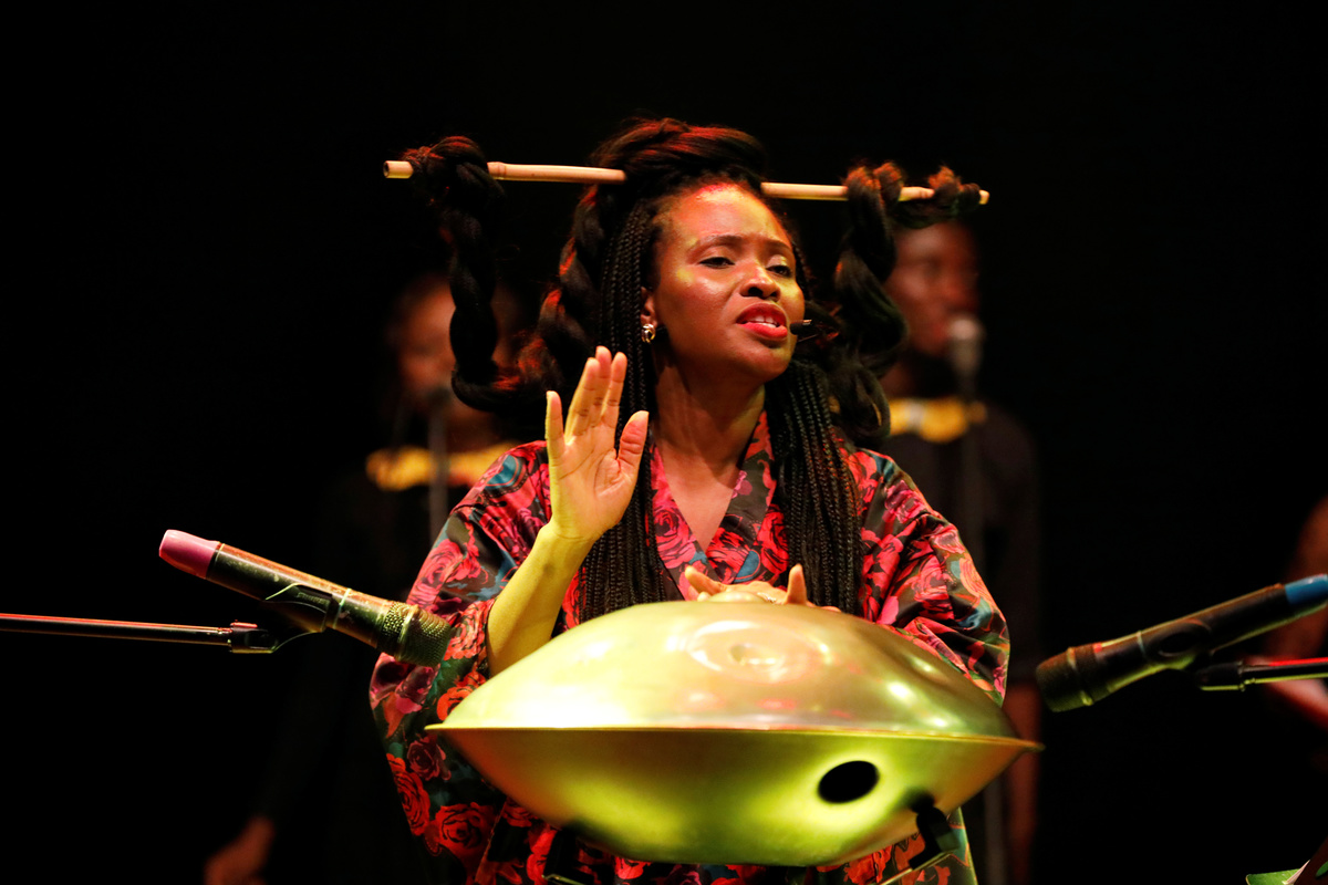 LAGOS (Reuters) - Dressed in a bright red and blue robe and backed by a local band with an eclectic range of instruments, Helen Epega beats a steel drum as she declaims dramatically to an unseen audience.