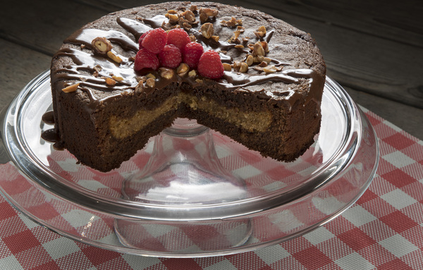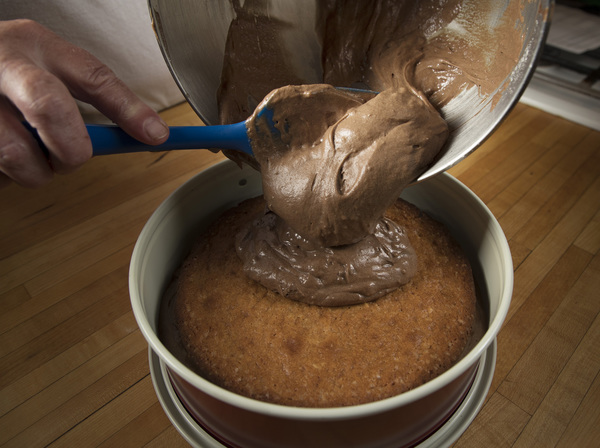 Made with crunchy peanut butter, our baked pie is easily transferred into a springform pan filled halfway with chocolate cake batter. Then it's covered with the rest of the batter.