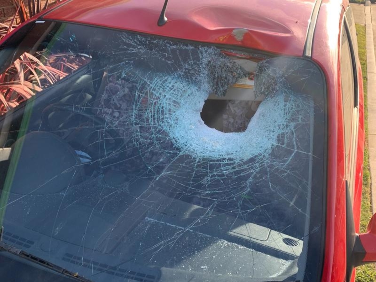 A piece of firewood from a passing ute allegedly pierced the passenger side of a car windscreen, sending splintered glass onto those inside.