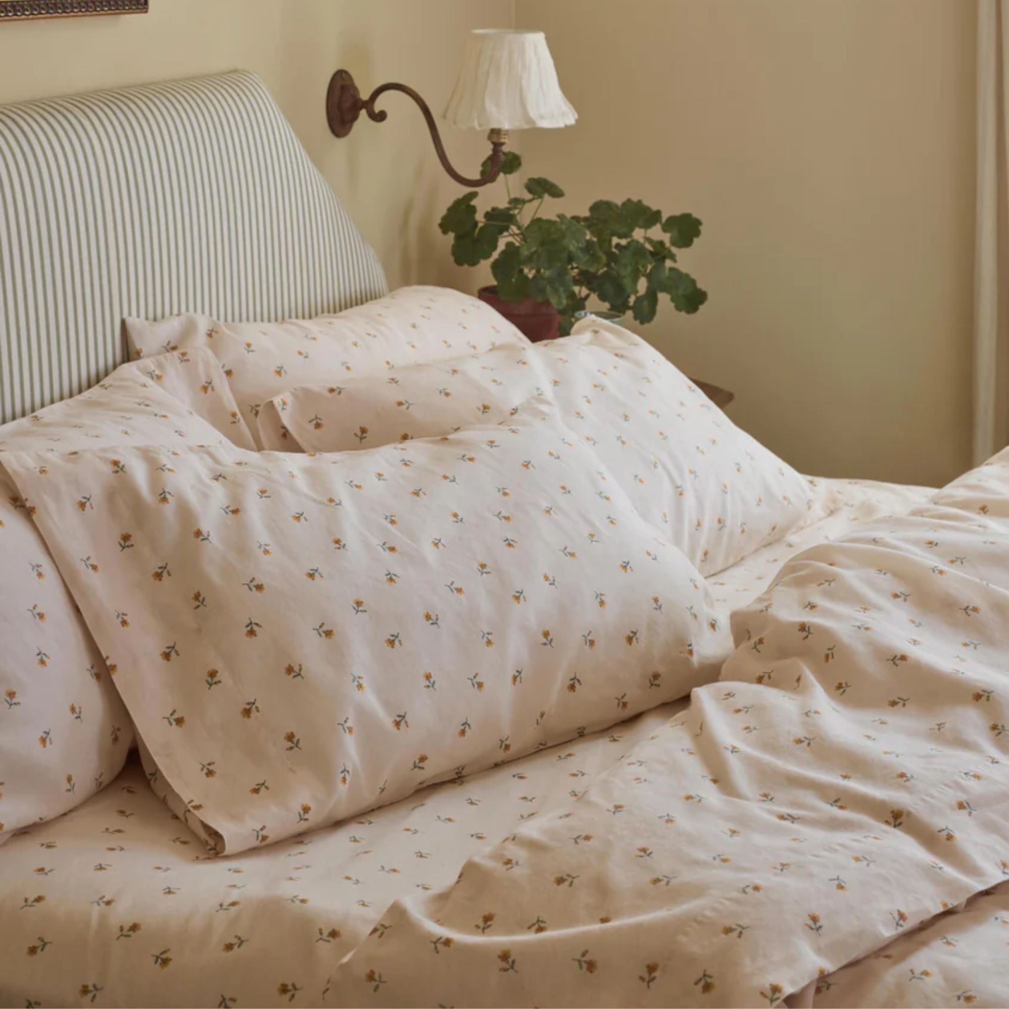 During these long, cold winter days, the spring-inspired Posy Bud collection, available at Piglet in Bed, is just the gentle reminder of better, warmer days ahead that we all need. It's available in a Dusk Blue and Honey Posy colorway, and both are available in pillowcases, fitted sheets, flatsheets, and more.