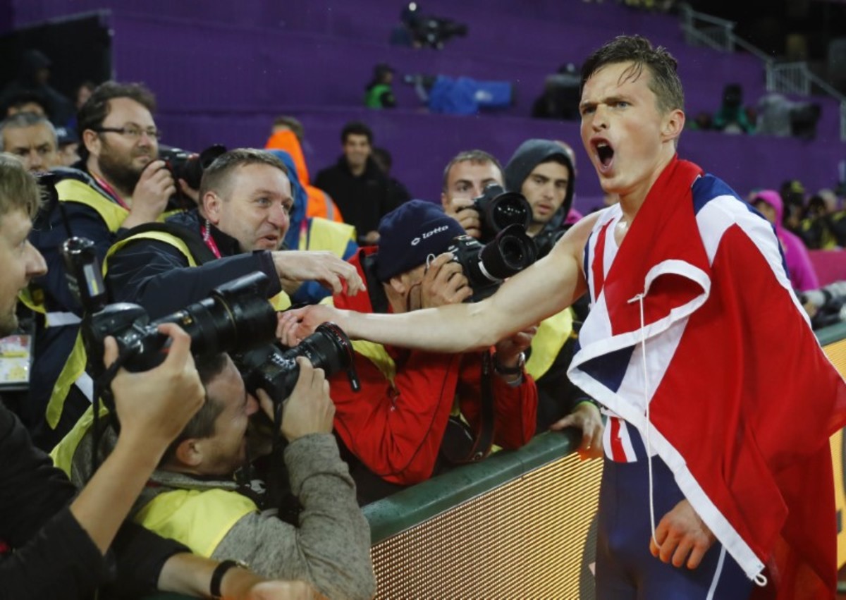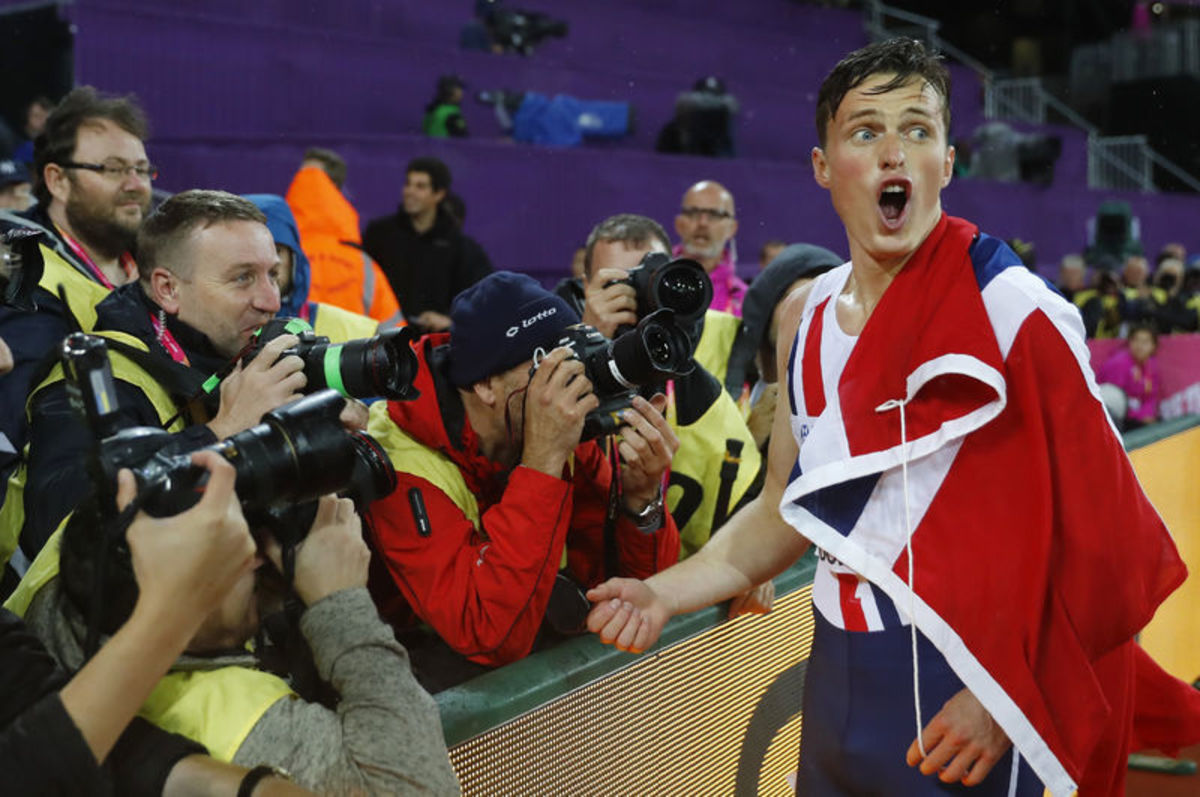 Still barely able to comprehend what had happened after becoming Norway's first world track champion for 30 years, Warholm was down on his haunches having been given a flag to parade when he looked straight at photographer Phil Noble.
