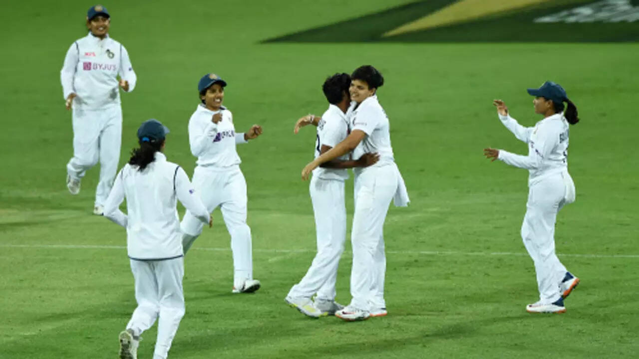 Meanwhile, Sharma, who started the day on 12, got to her second Test fifty with a sweep behind square, reaching the landmark in 148 balls with the help of five boundaries.