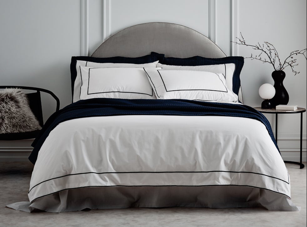 One of the most instantly gratifying places to begin to add these pared-back embellishments is in the bedroom. Bedlinen featuring bordering in a contrasting fabric or colour will frame your bed and give it more structure when it’s made. Sheridan’s Corlette linen is a great example in 100 per cent cotton with a sateen square embroidery detail that gives an otherwise simple white sheet a certain assertiveness, especially as the bordering is repeated on the pillowcases.