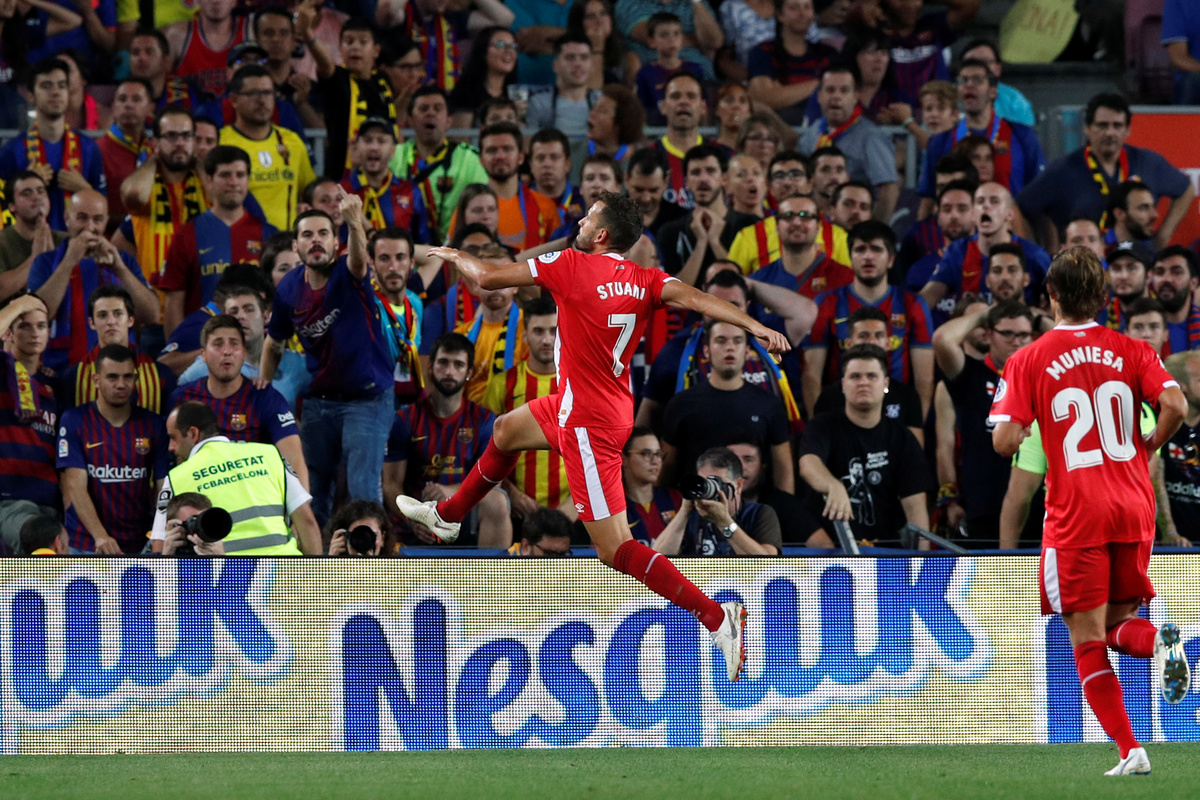 Girona took advantage of the situation right before the interval when Cristhian Stuani freed himself from Gerard Pique and Sergio Busquets with an impressive piece of control and fired past Marc-Andre ter Stegen.