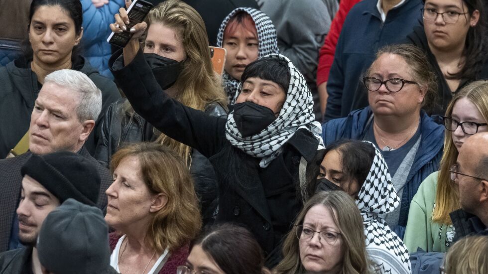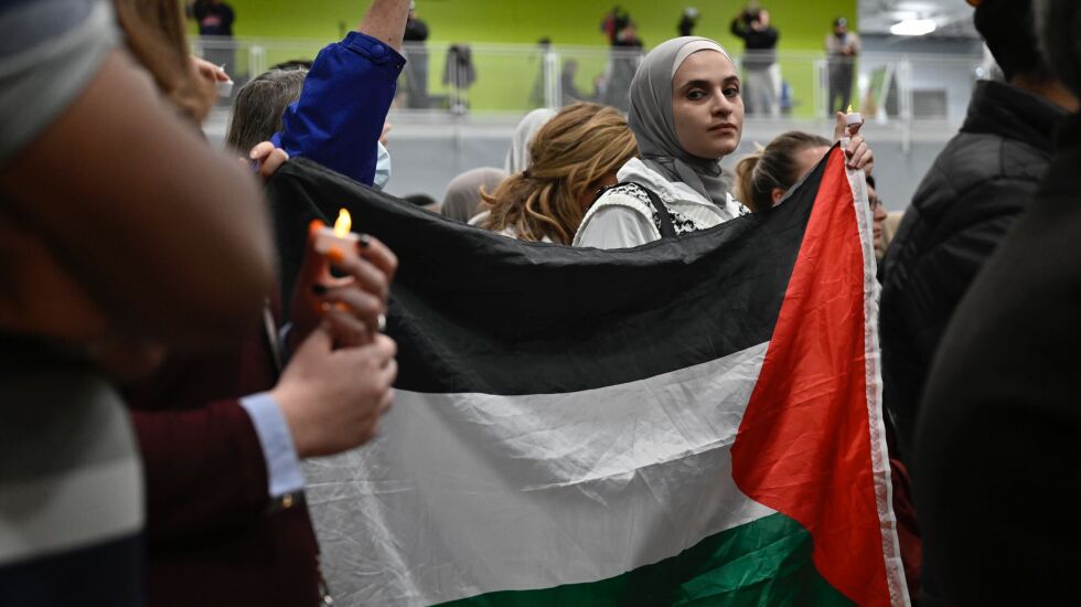 At Tuesday’s vigil, many attendees carried flowers or signs. One read: “This is what happens when you spread hate and dehumanize Palestinians.” Another, carried by a boy who appeared to be around the same age as Wadea, read, “I am not a threat.”