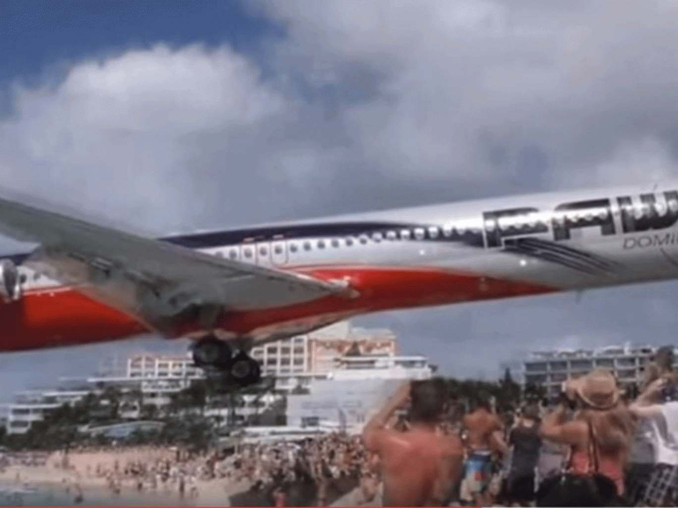 Video shows the PAWA Dominicana flight banking as it approaches Saint Martin's Princess Juliana International Airport, before people on Maho Beach cheer as it flies over them.