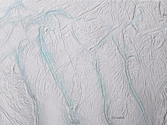 NASA has repeatedly photographed and flown through w ater jets shooting out of these "tiger stripe" features on Enceladus' south pole