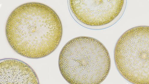 The UK’s spring phytoplankton bloom is normally dominated by diatoms, a group of phytoplankton that come in beautiful shapes. Encased in glass-like silica shells, diatoms are mostly green due to the chlorophyll they contain.