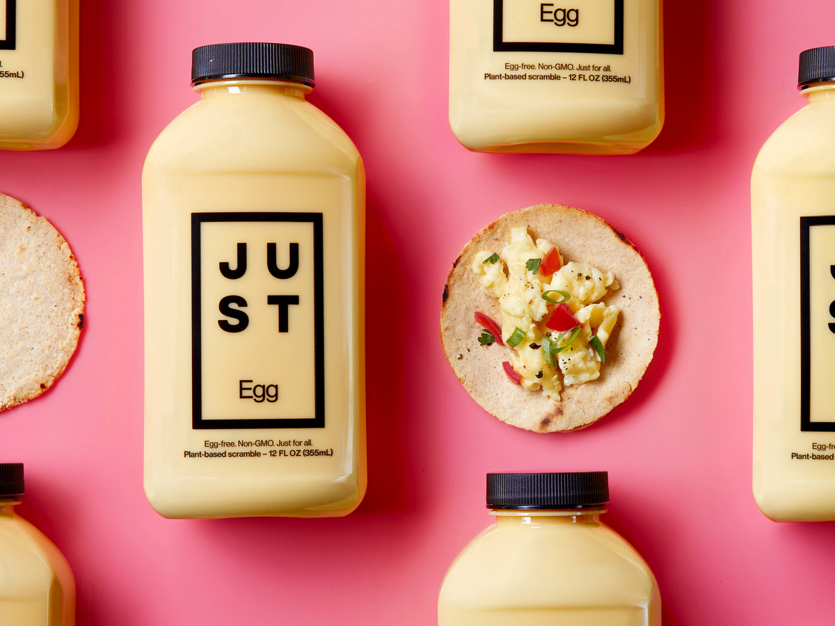 JUST's products including JUST Egg, a scrambled egg imitation made from mung beans, are available in the United States, Canada, China and Singapore, with sales evenly split between retailers including Walmart <WMT.N>, Safeway and Whole Foods <AMZN.O>, and restaurants such as Tim Hortons <QSR.TO>.
