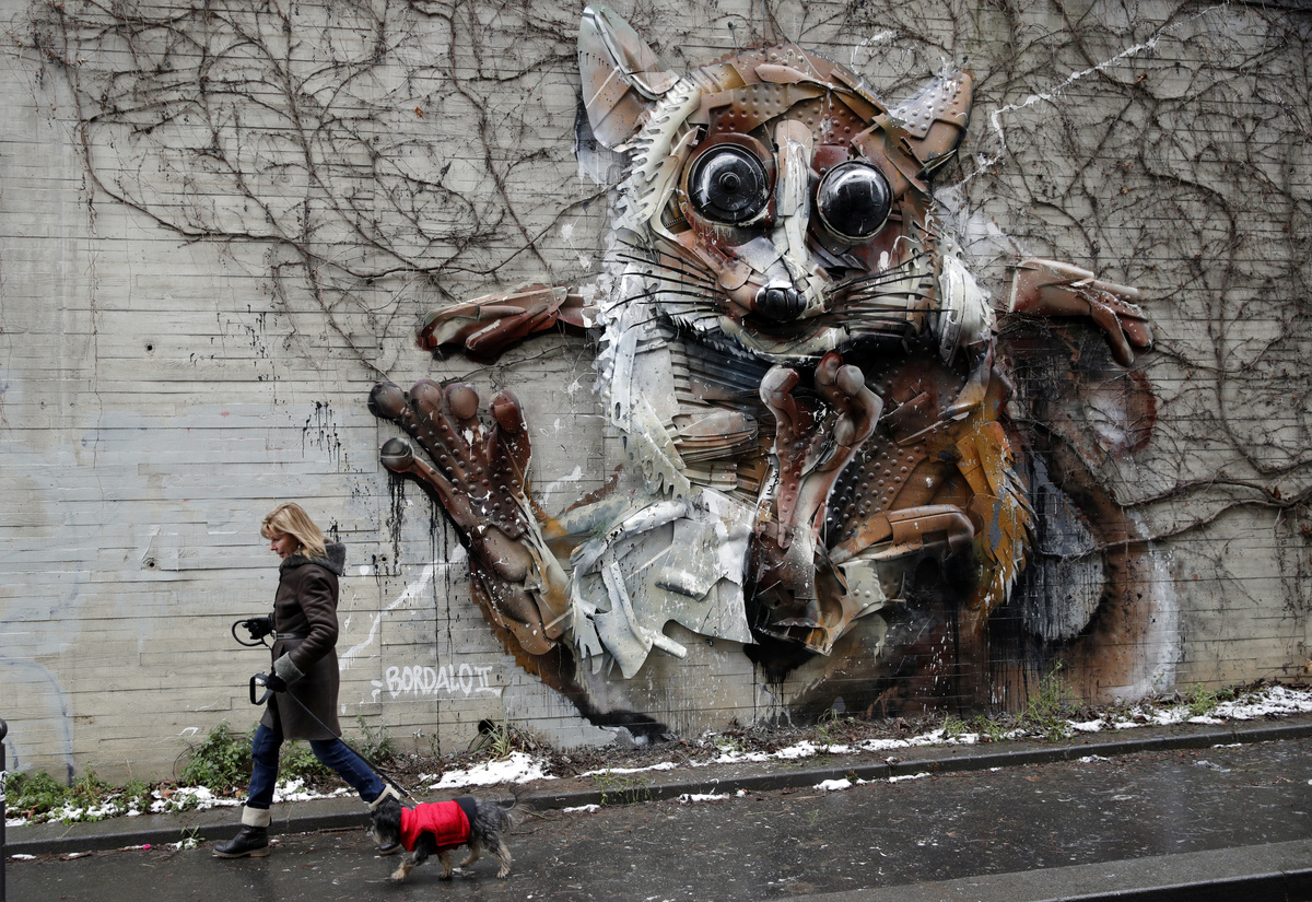 The artist, whose real name is Artur Bordalo, is bringing his work to the French capital in the exhibit entitled "Accord de Paris" (Paris Agreement), a reference to the 2016 Paris Climate Change Agreement.